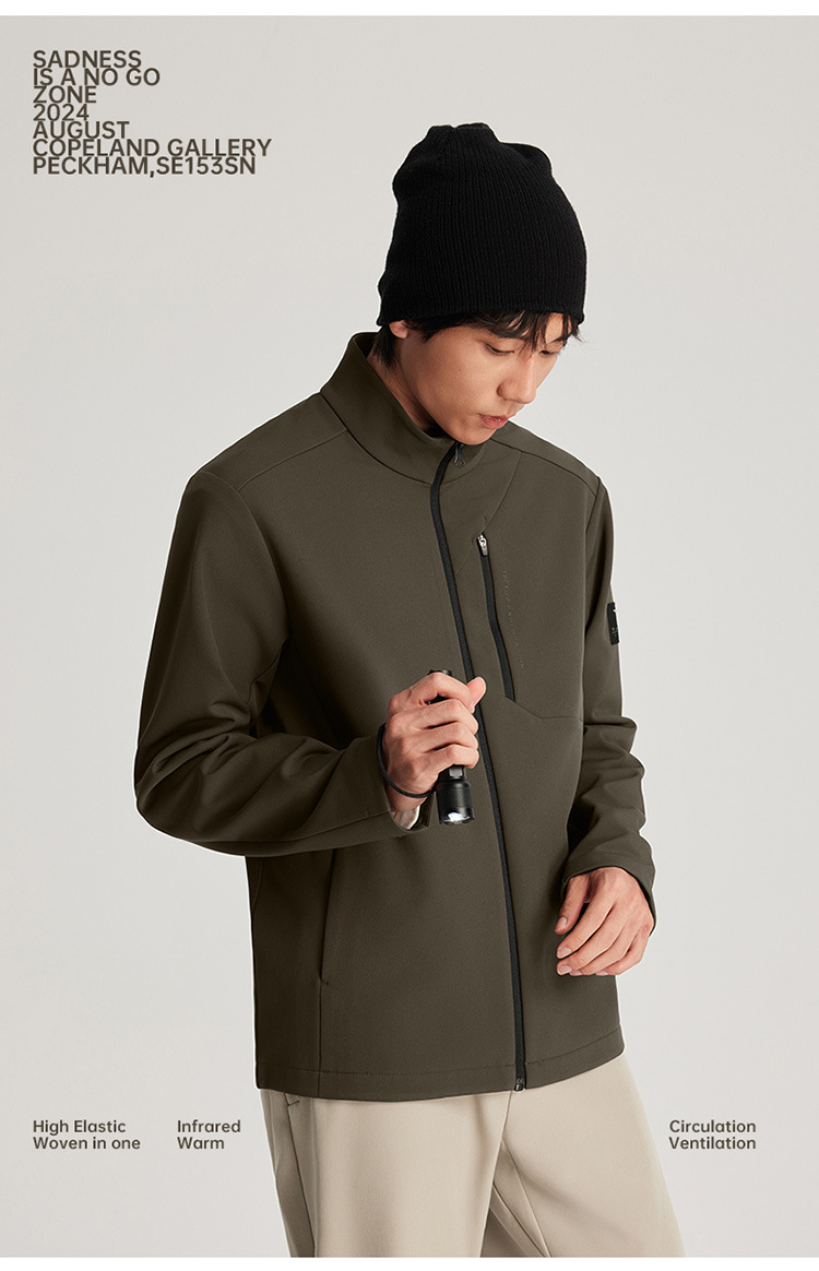 2024秋冬の新型開拓アウトドア男性用スタンドカラーのソフトシェルコートとカーディガン男性用登山服