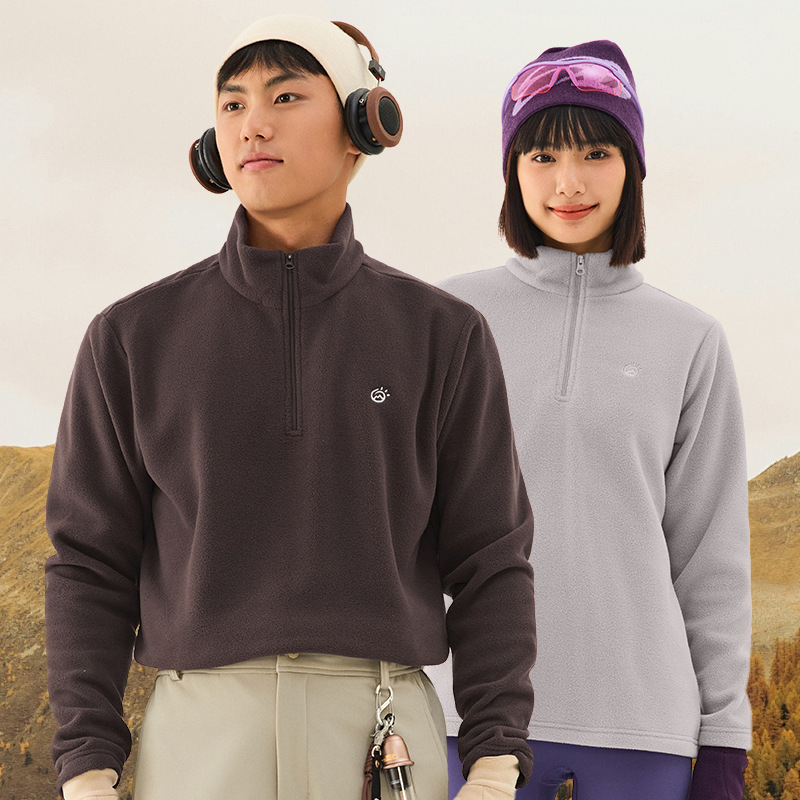 2025秋冬新作探拓アウトドアカップル向けプルオーバーハーフジップフリースジャケット女性用ポーラーフリース防風保温