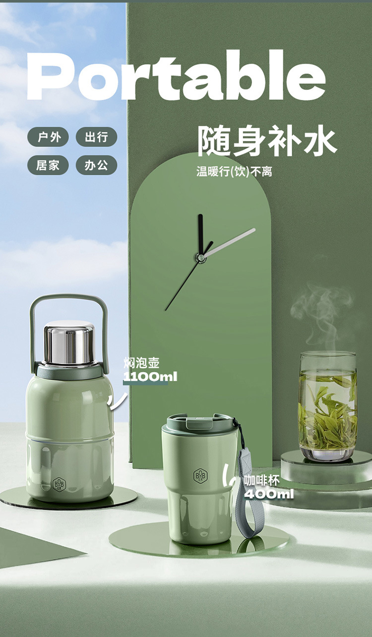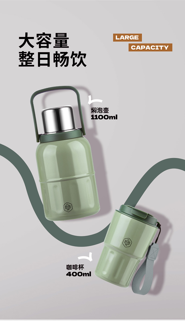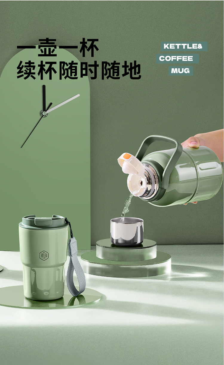 博堡優悦随行セット (保温ポット保温カップ) コーヒーカップセットフィルター付きグリーン