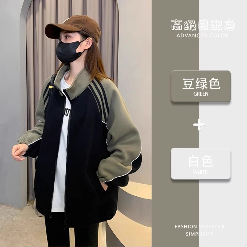 加棉加厚棒球服女休闲百搭三条杠上衣2025秋冬新款运动时尚短外套