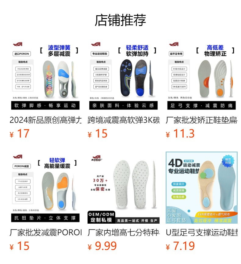 メーカー卸売り衝撃吸収PORON靴マット高弾PU国内販売クロスボーダー男女ランニングバスケットボール運動足弓靴マット