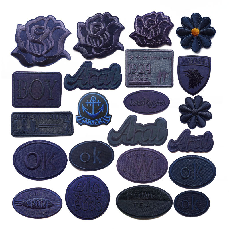 青い刺繍バッジの布は服を貼って丁を貼ってデニムの青の装飾の補修の服を貼って四角形の純色の布を貼って貼ります。