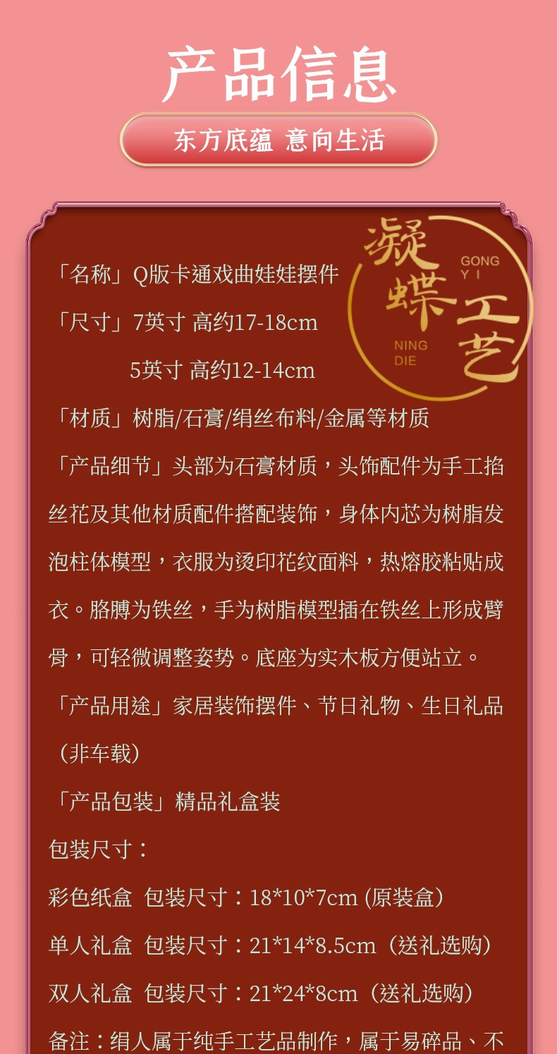 特别说明:绢人都属于易碎品、不可拆卸、不能清洗、不能长时间高温暴晒、不能随意摔打、人为使用不到造成的破损不在质量问题范畴。
