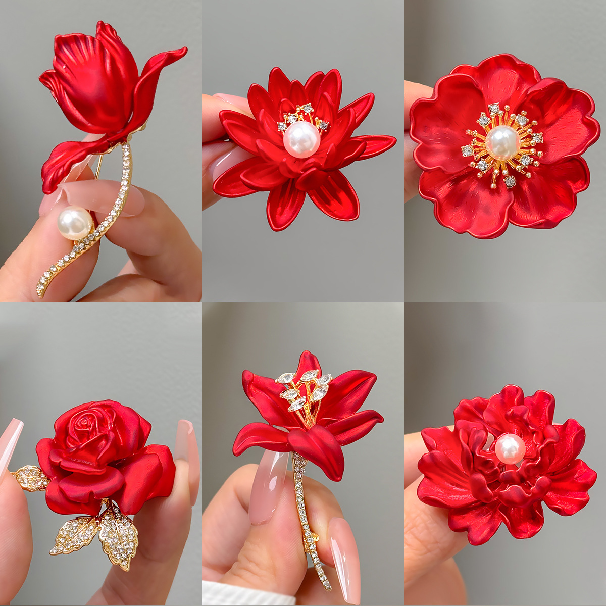 新年赤いバラ牡丹百合薔薇ケシ花ブローチコート洋服胸花服ピンアクセサリー