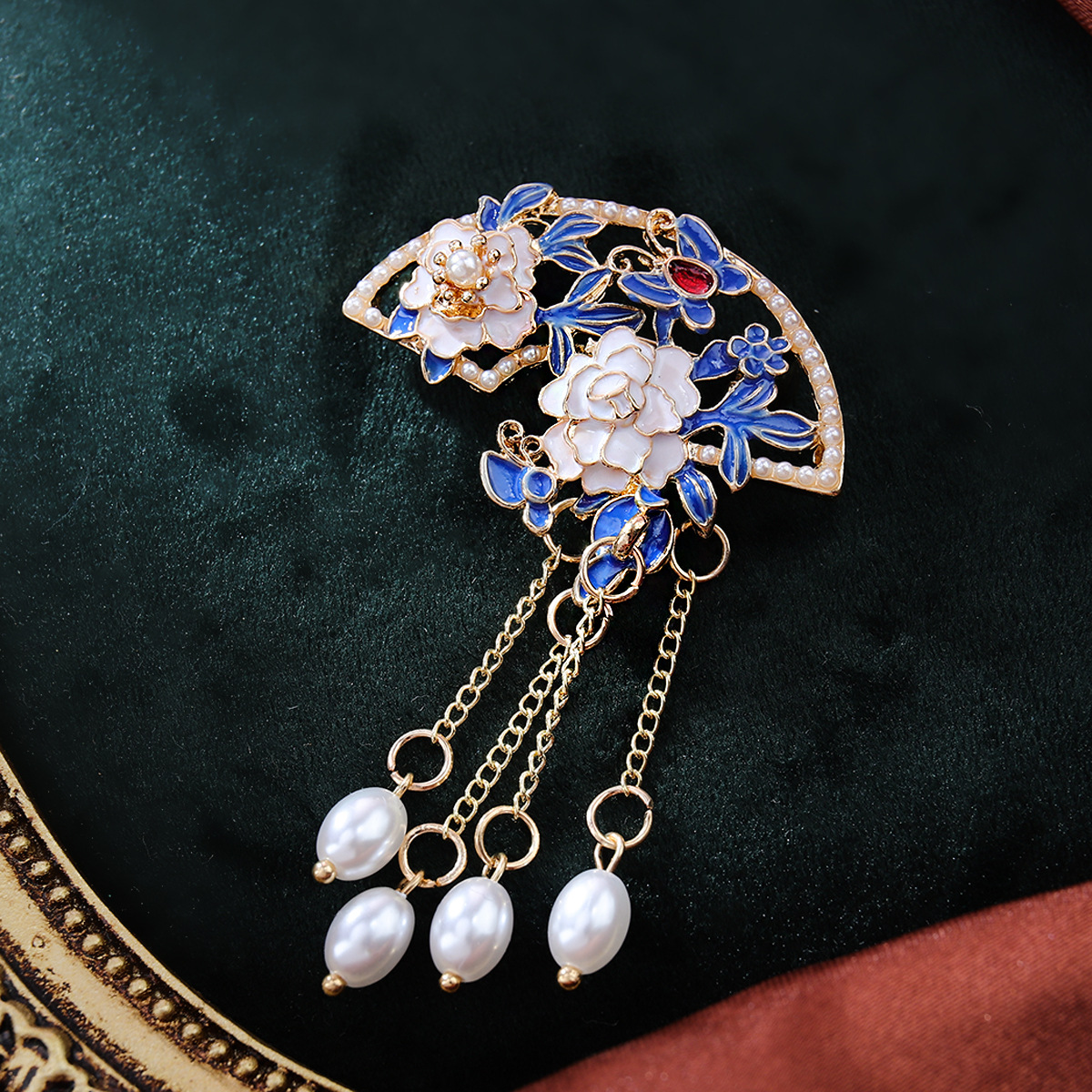 国風ファッション絹花ブローチ女性感真珠フリンジバタフライ恋花胸花チャイナドレスコートアクセサリーピン