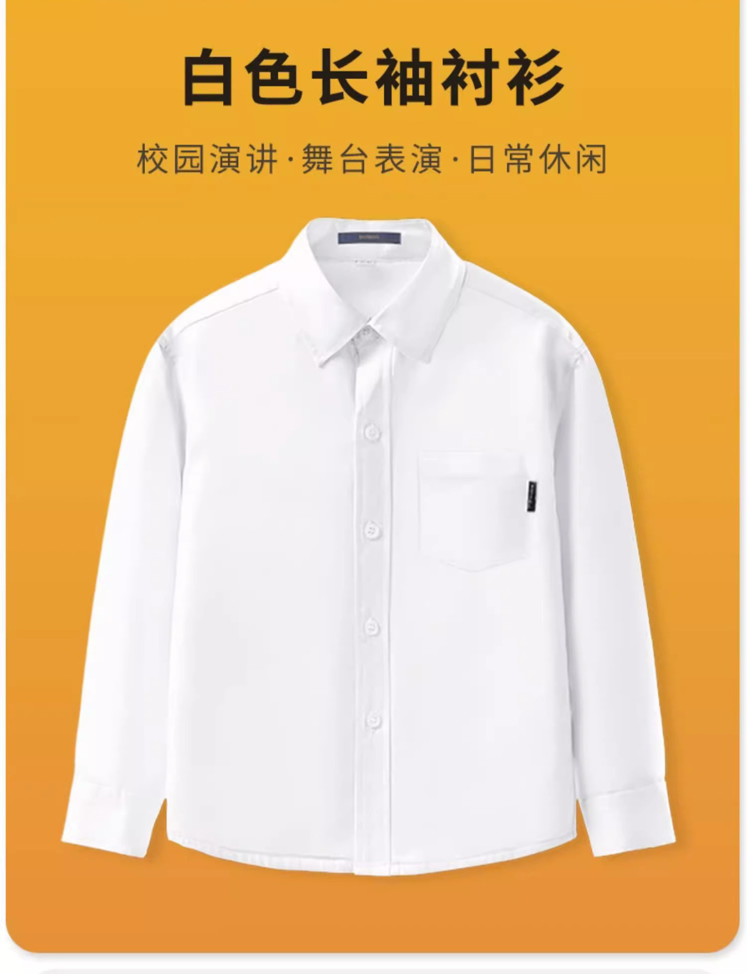儿童白衬衫男童女童长袖白色衬衣春夏中小学生校服表演出服装运动