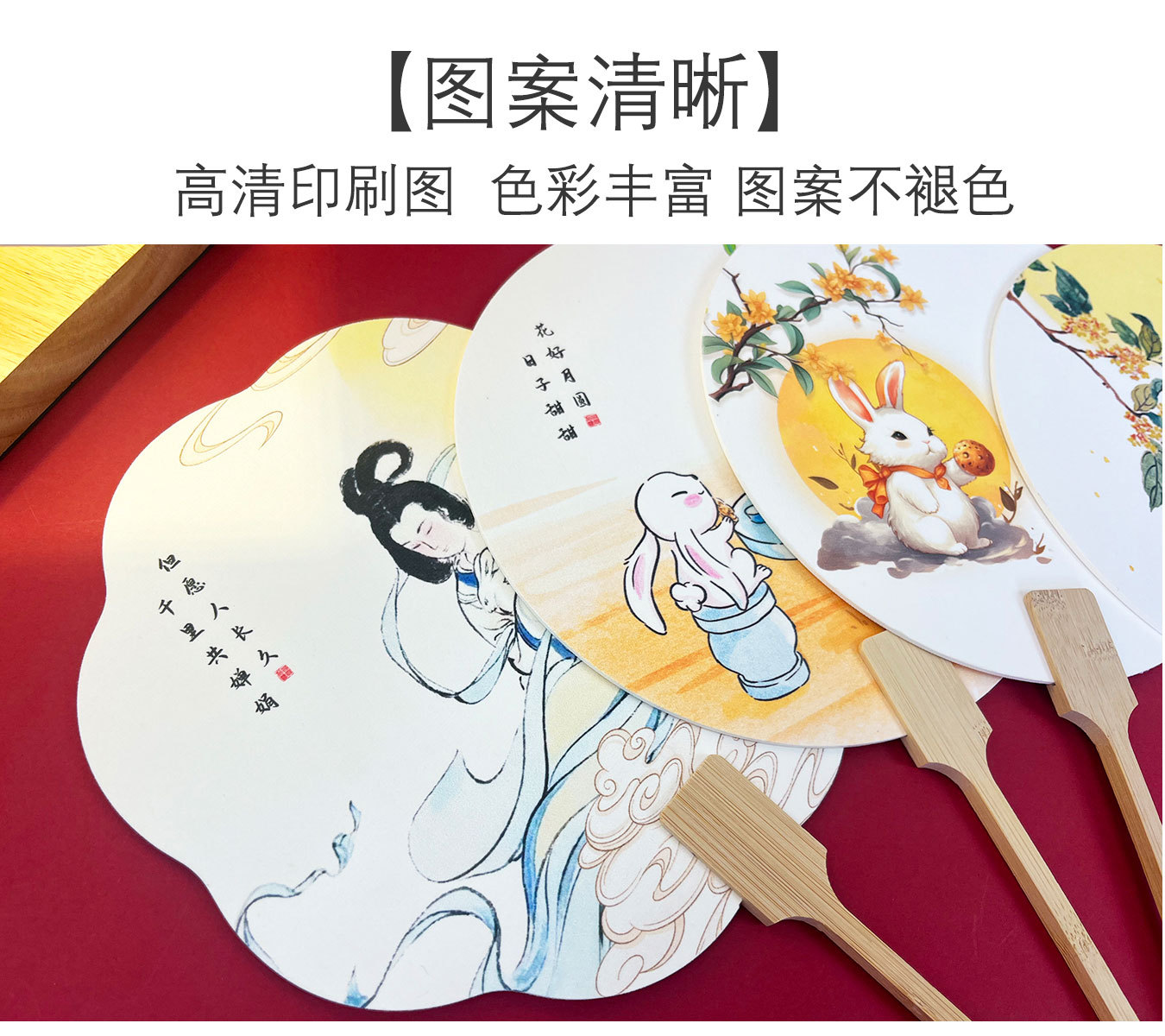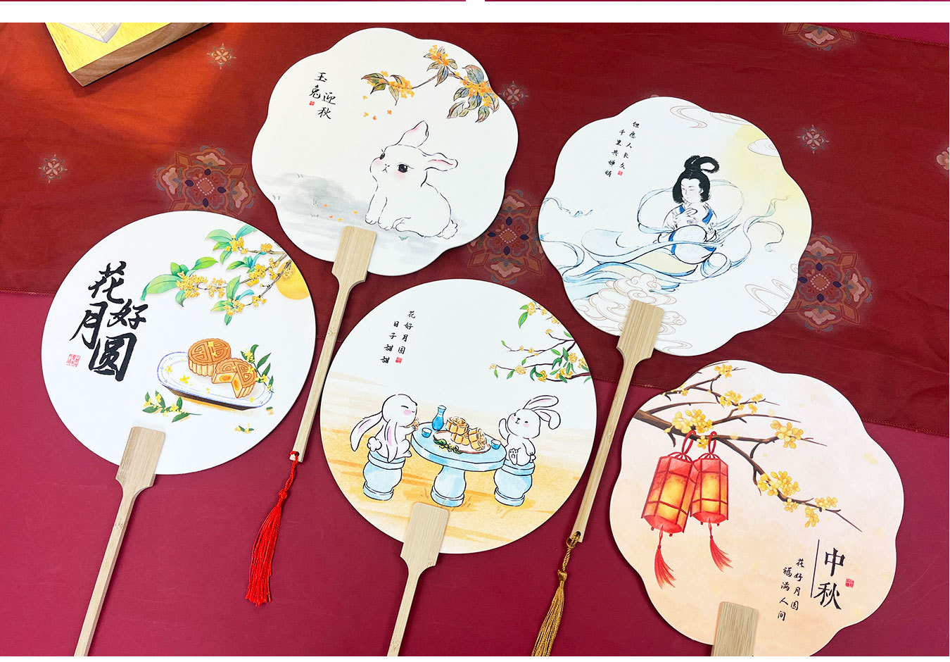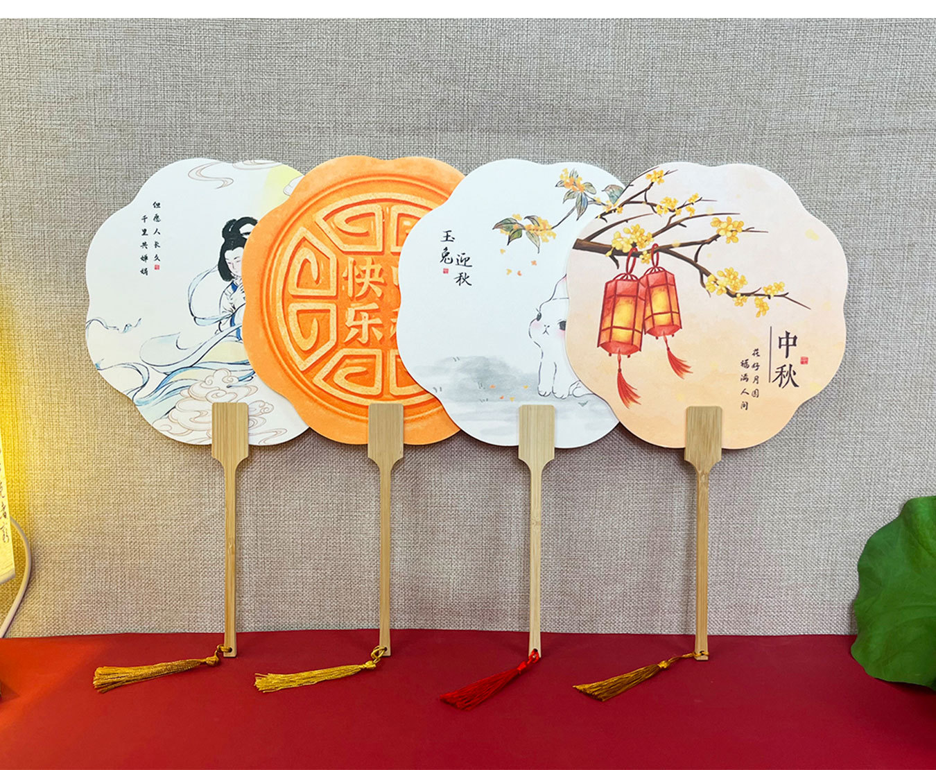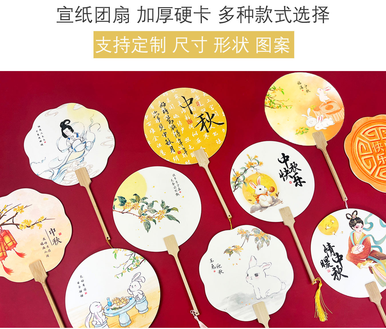 中秋節国潮手描きpvc団扇観光地区創意文創古風扇面会社暖場活動団建扇