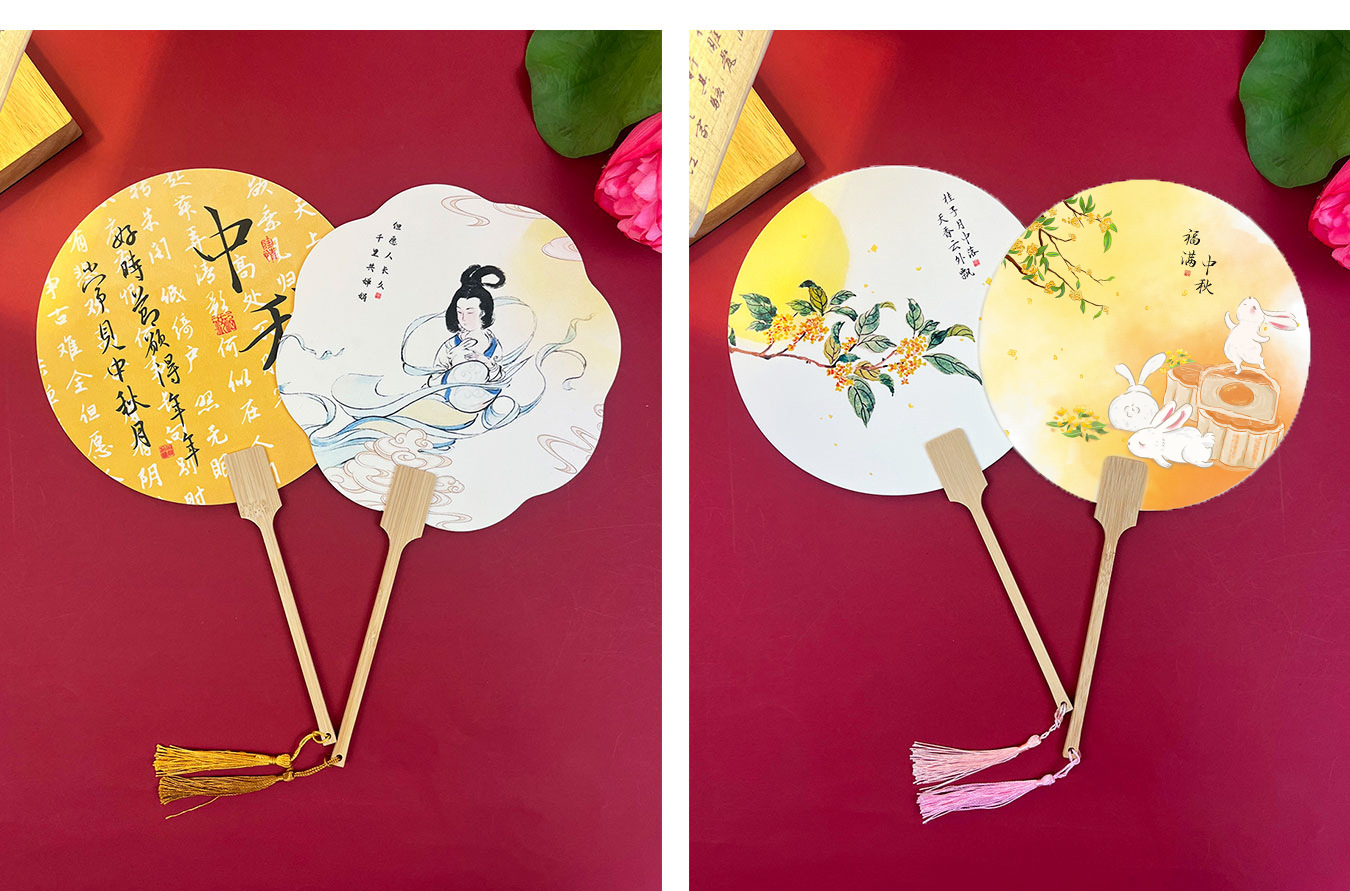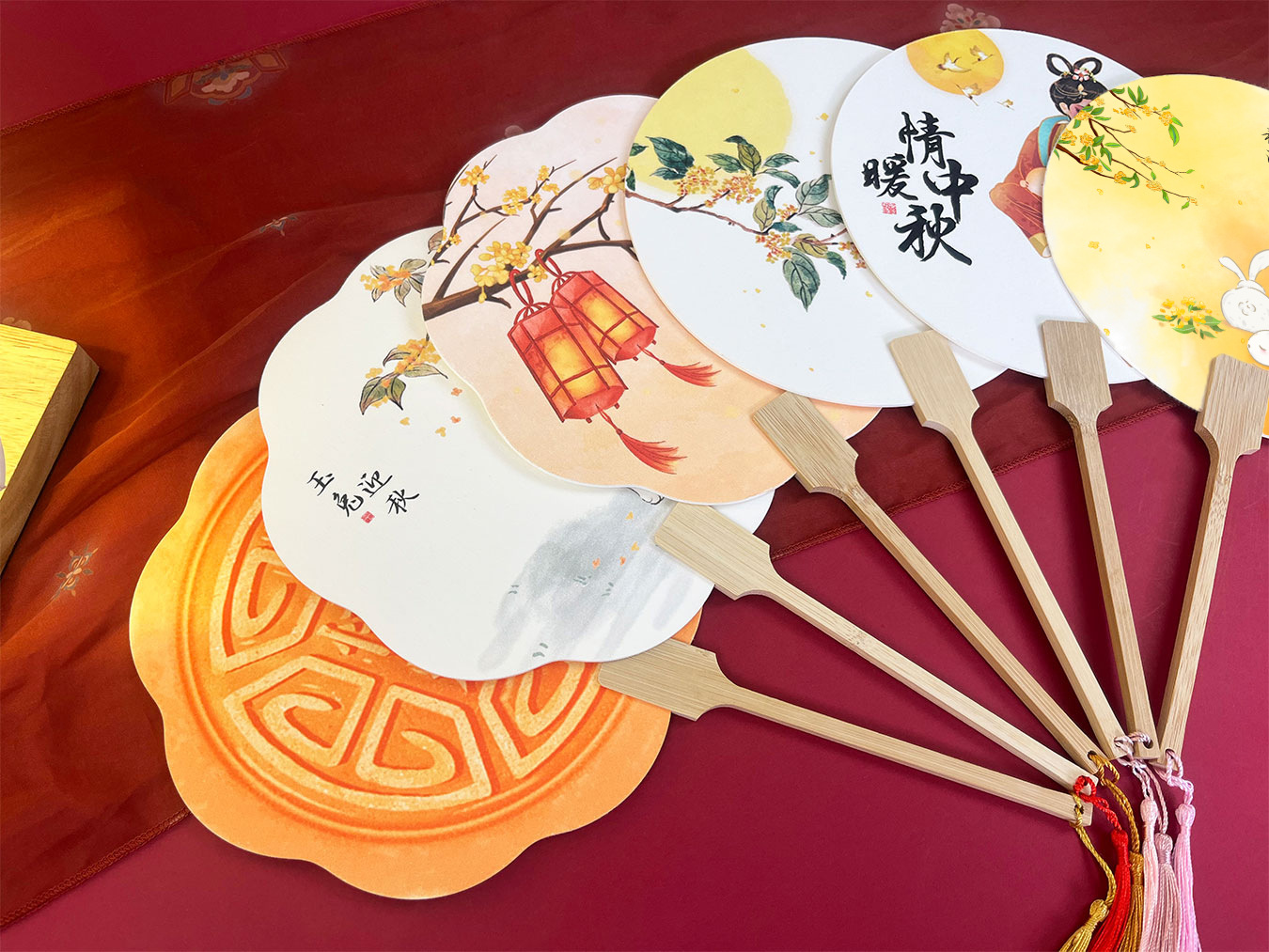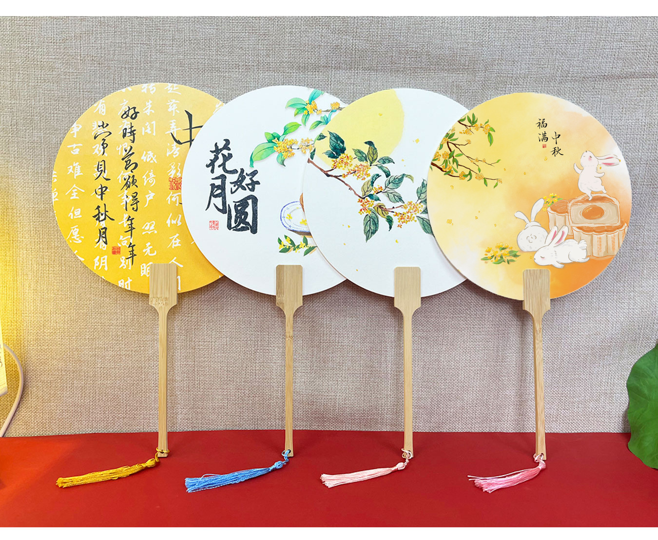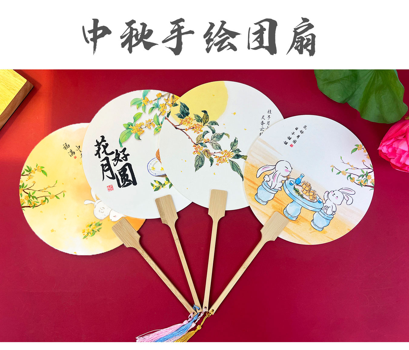 中秋節国潮手描きpvc団扇観光地区創意文創古風扇面会社暖場活動団建扇
