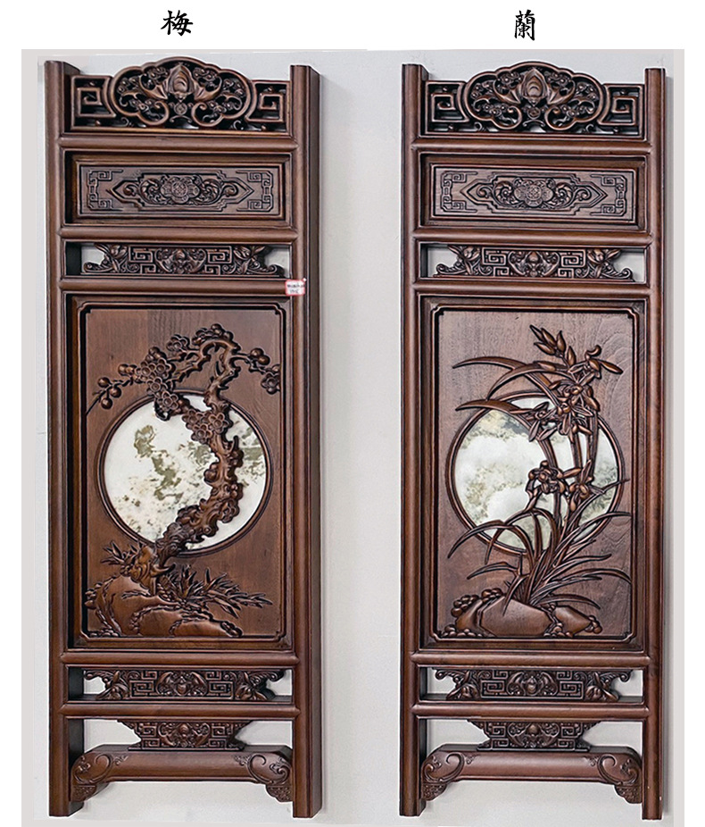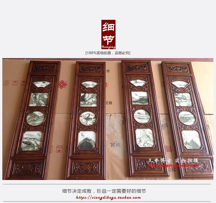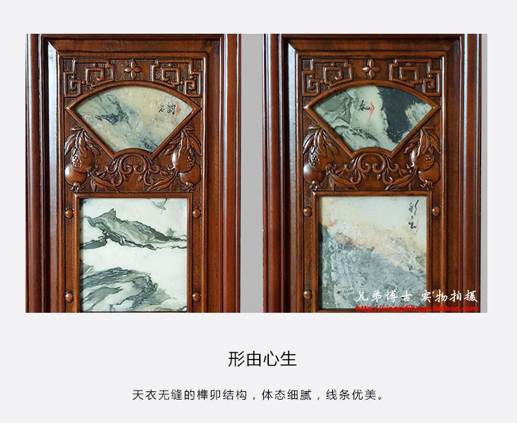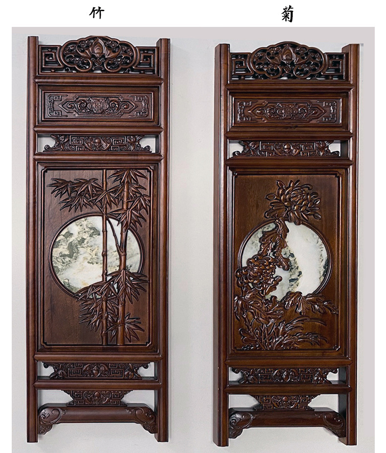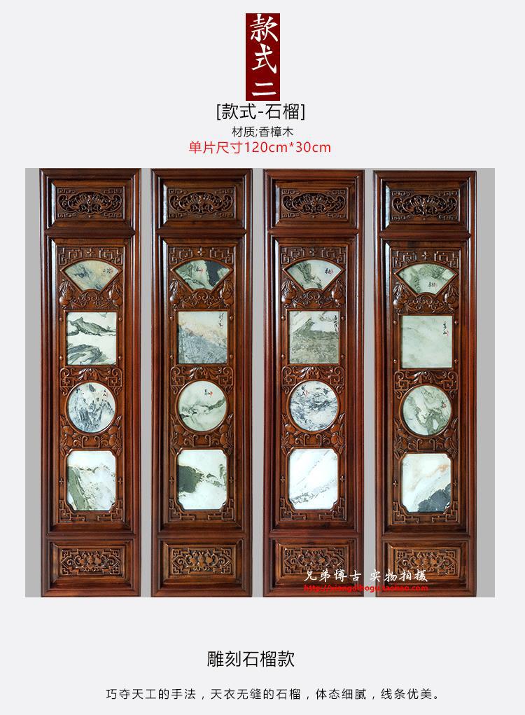 木雕客厅沙发背景大理石云石挂屏新中式实木四条屏香樟木挂画
