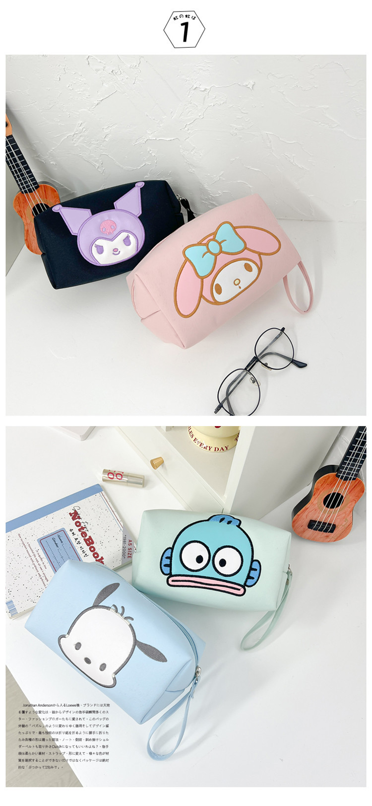 2024新型化粧バッグ便利で可愛い大容量収納個性バッグ漫画熊手提げ化粧バッグ