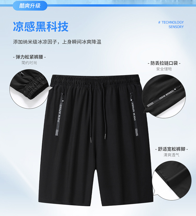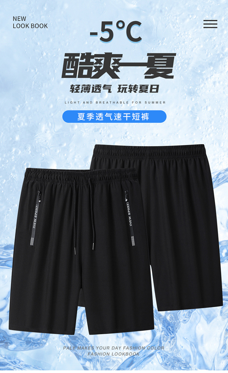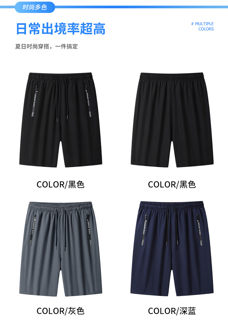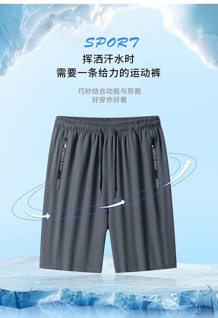 氷の糸の5分のズボンの男性の夏の薄いタイプのカジュアルな速乾のゆったりしている大きいサイズのファスナーのポケットの運動のフィットネスの男性のショートパンツ