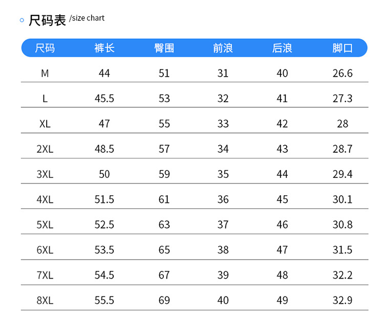 サイズ M,L,XL,2XL,3XL,4XL,5XL,6XL,7XL,8XL