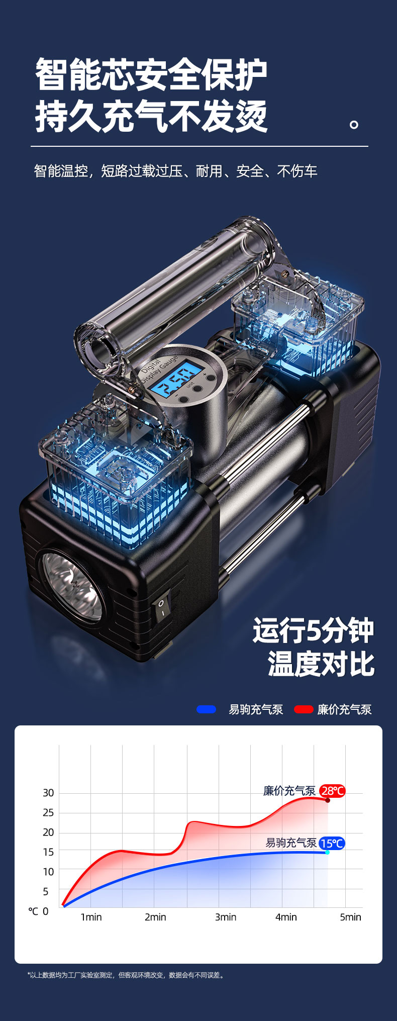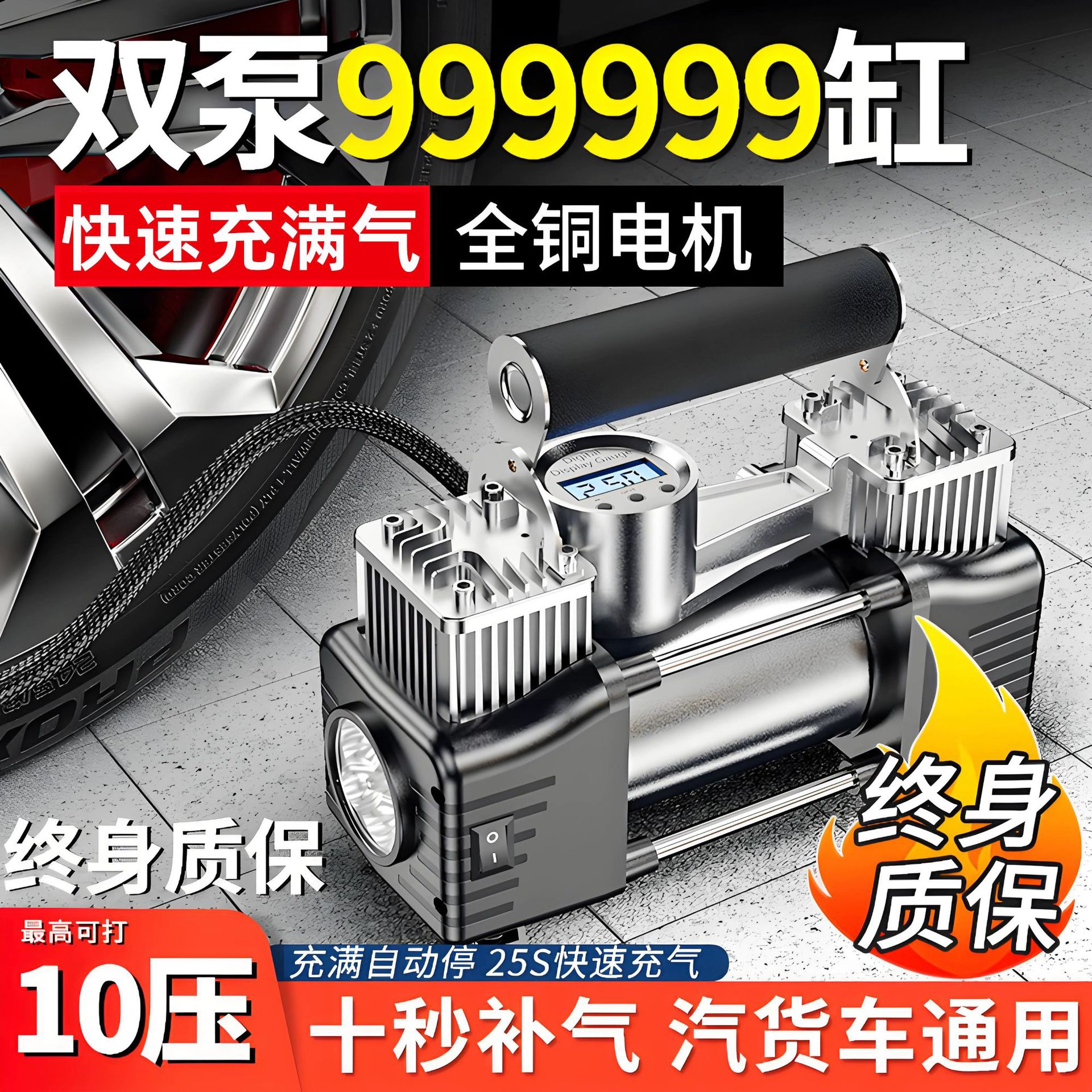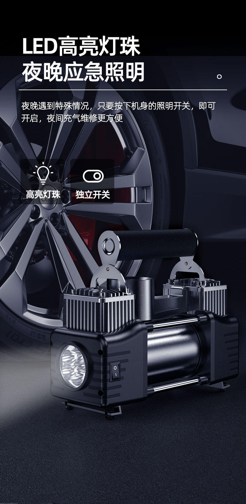 车载充气泵小轿车数显照明便携式多功能自动充停双缸高压打气筒