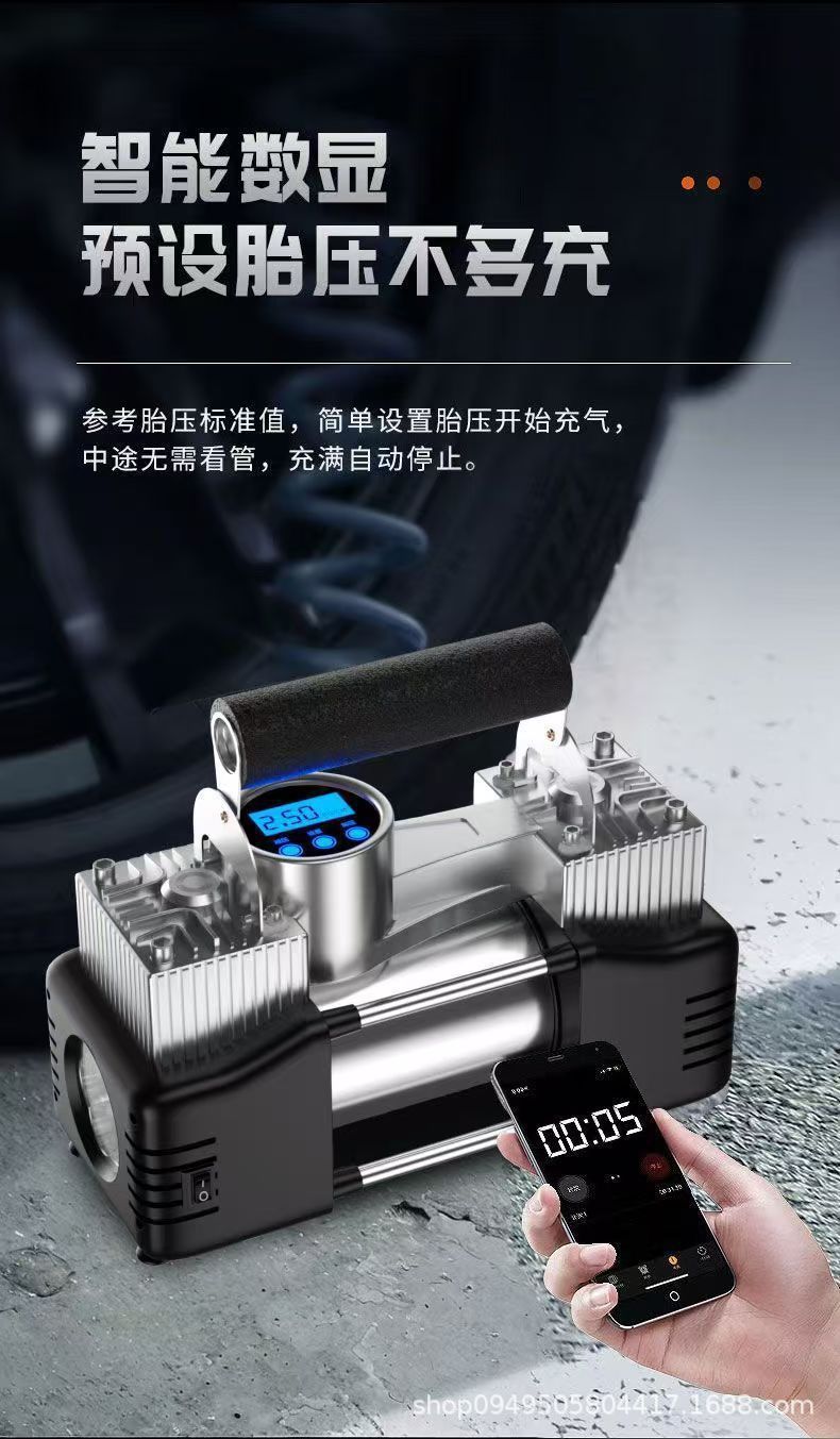 车载充气泵数显打气泵便携式小轿车多功能自动充停双缸高压轮胎泵