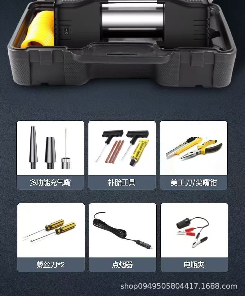 车载充气泵汽车用大功率多功能便携式电动双缸高压速冲轮胎打气泵