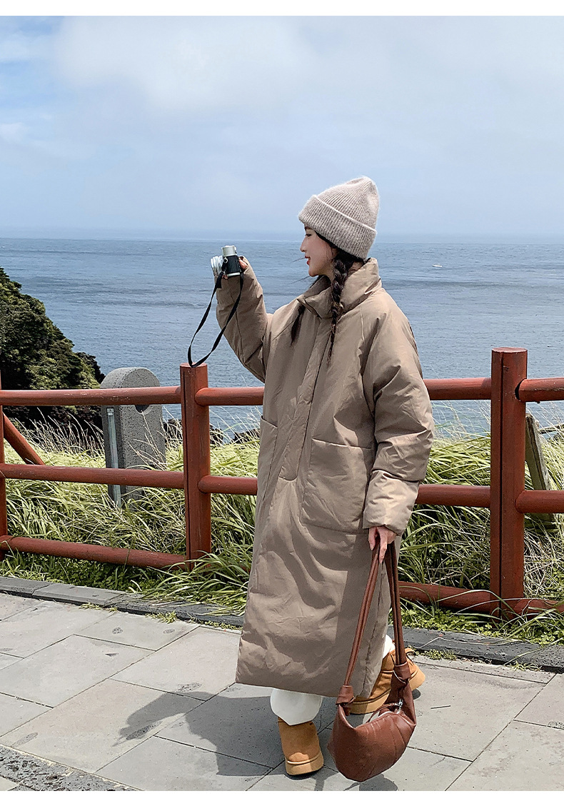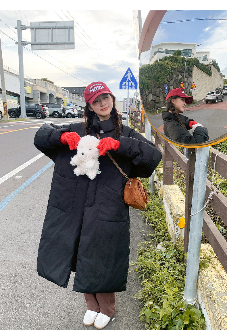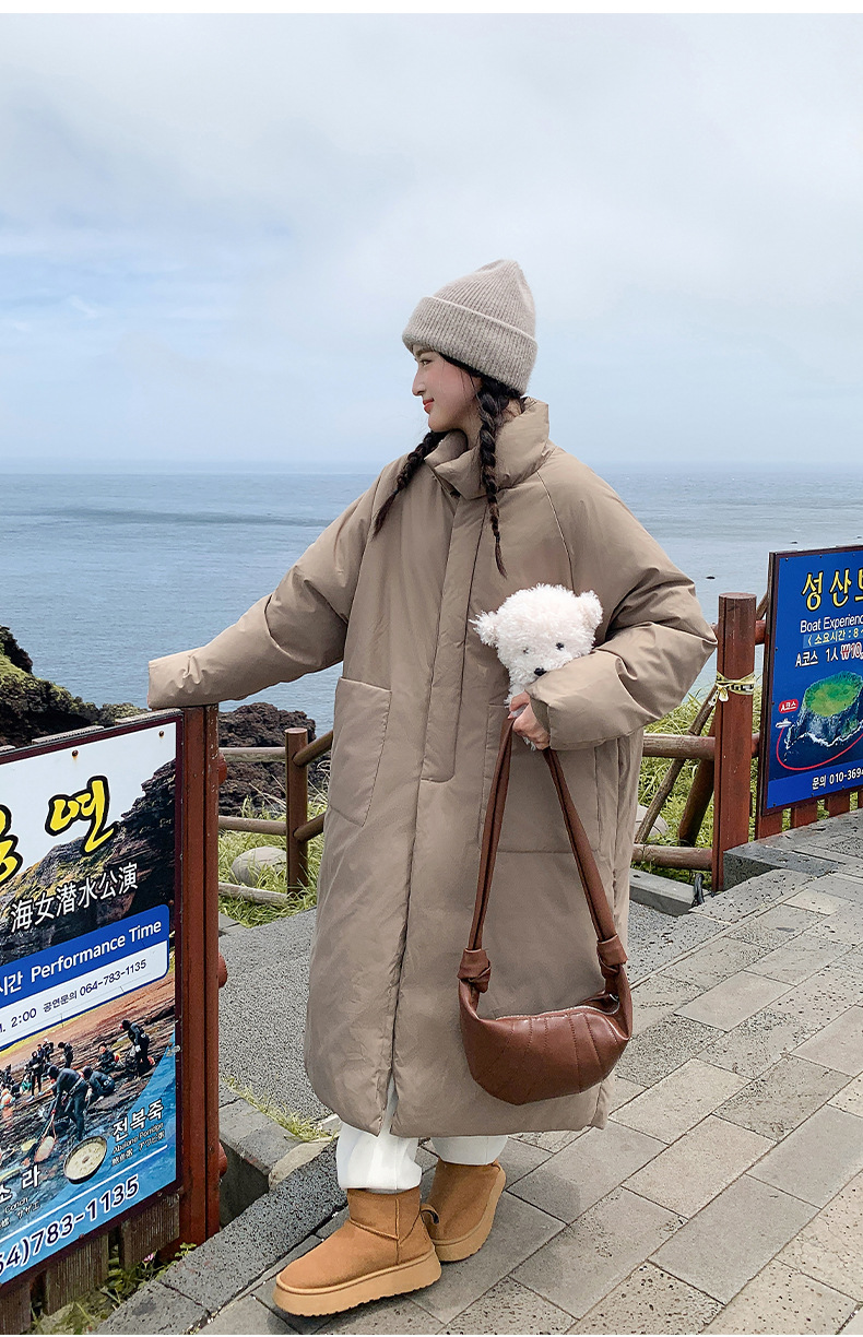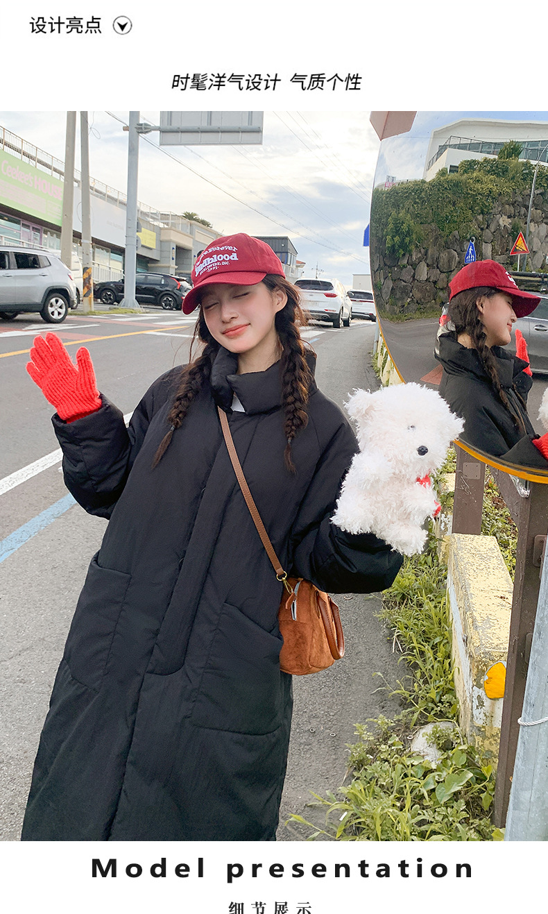2025年新作冬用ダウンコットンコート、膝丈ミドル丈、厚手ゆったりコットンコート、韓国風ファッショントレンドジャケット