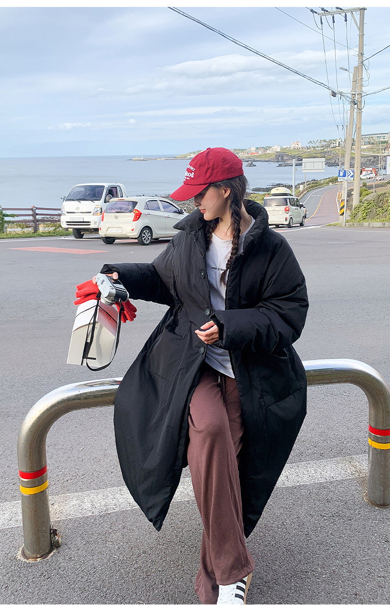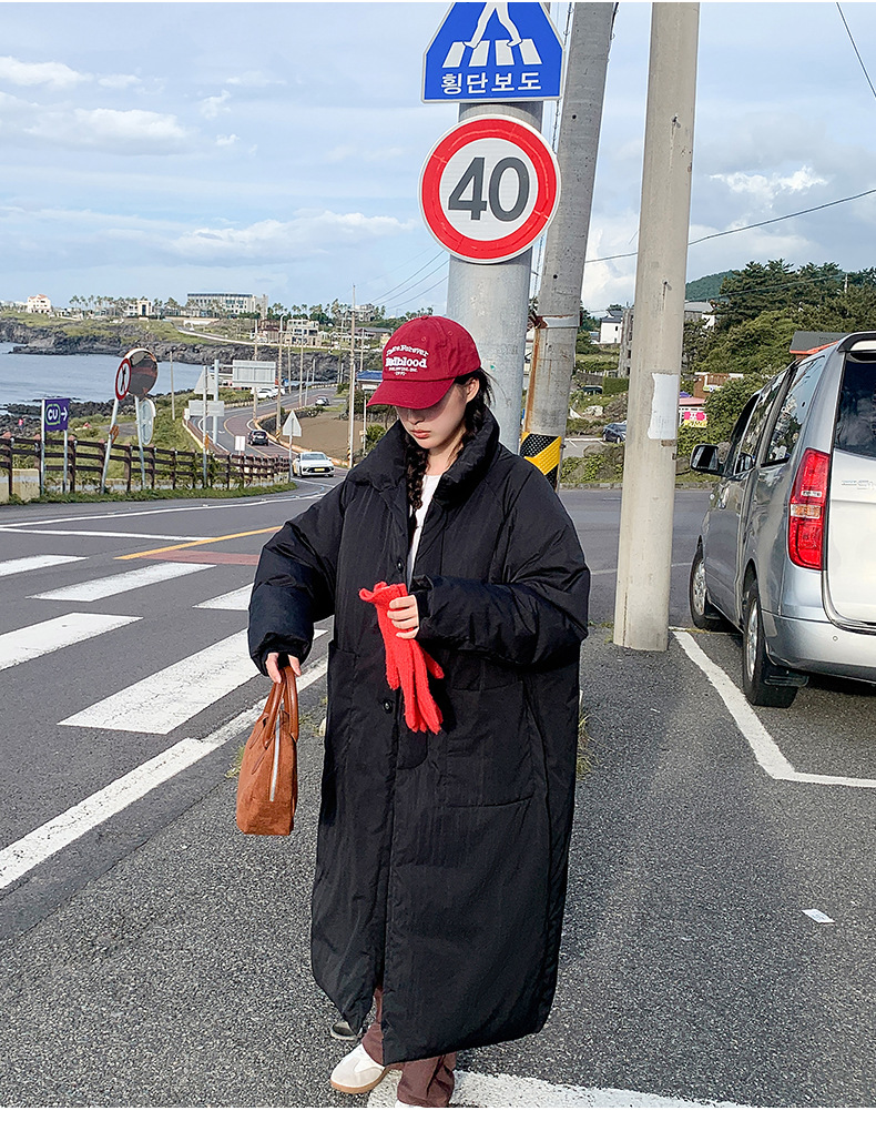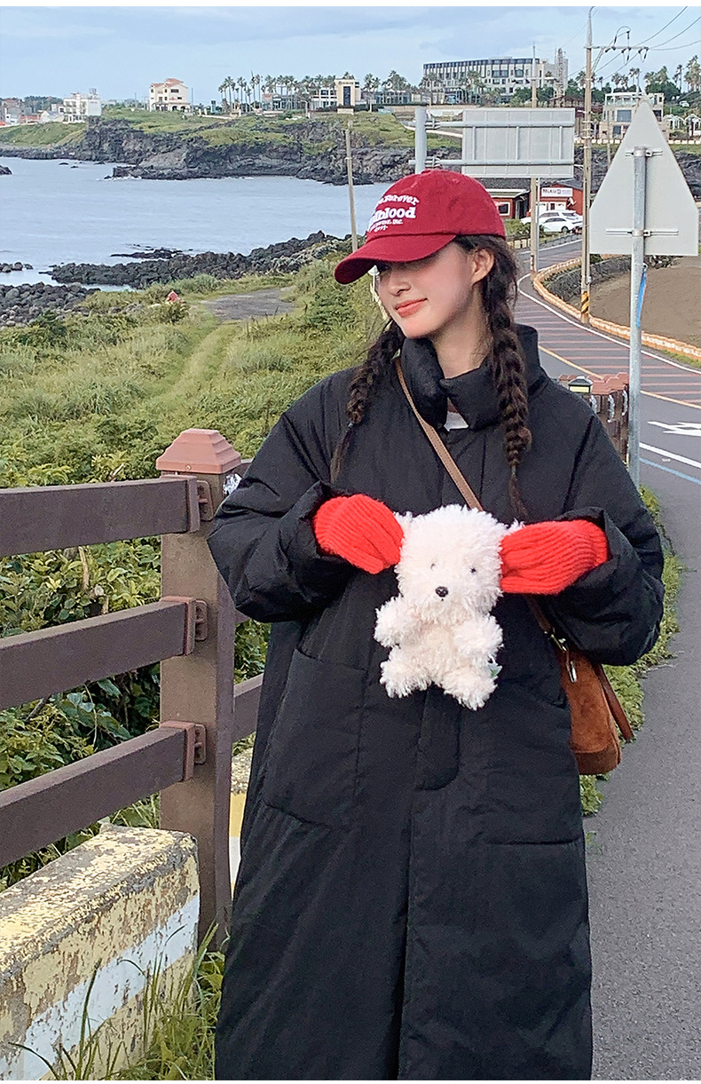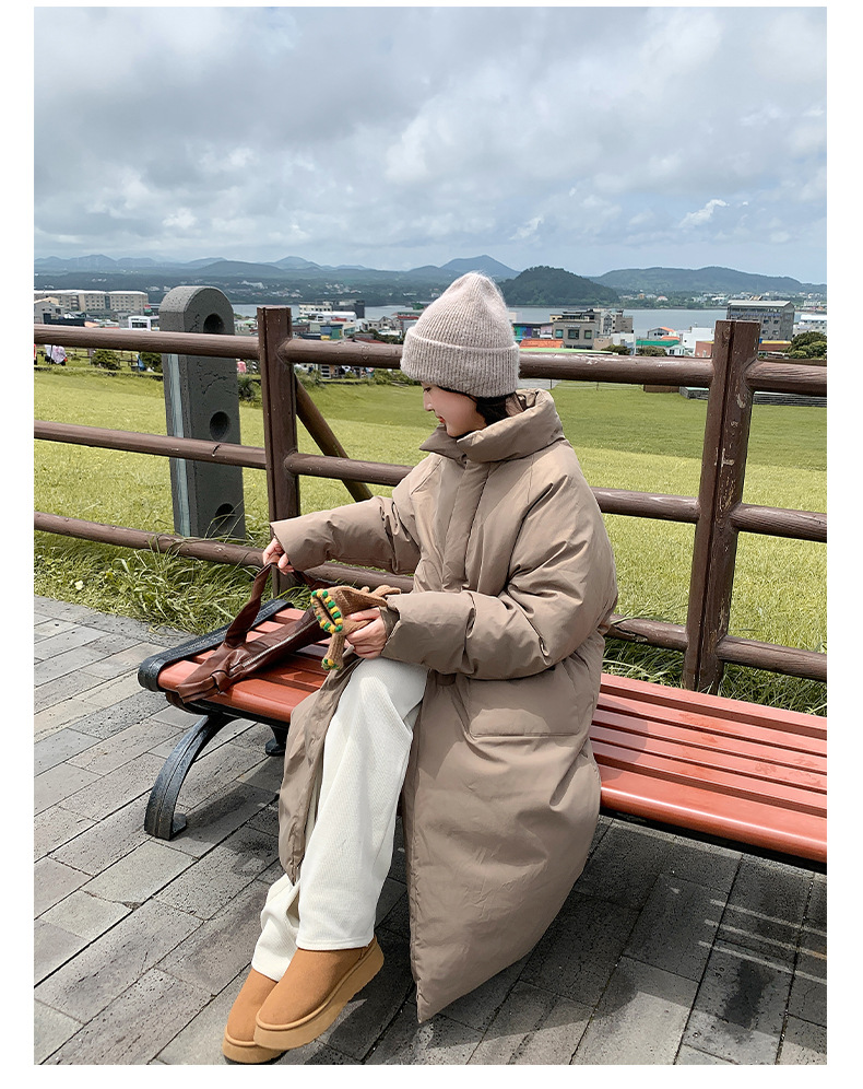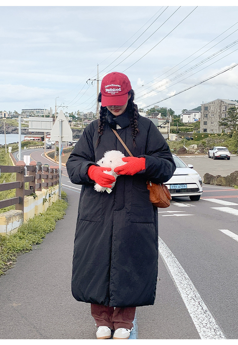 2025年新作冬用ダウンコットンコート、膝丈ミドル丈、厚手ゆったりコットンコート、韓国風ファッショントレンドジャケット