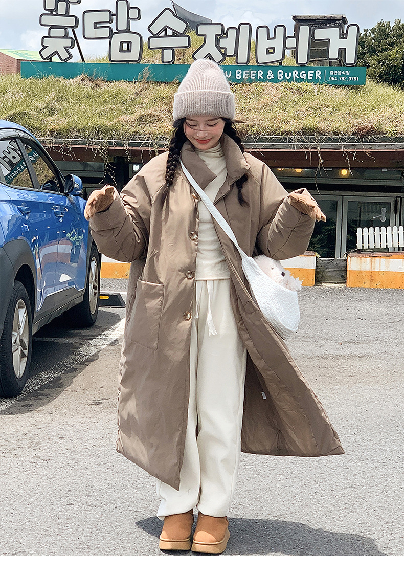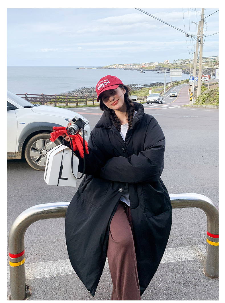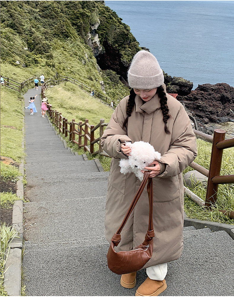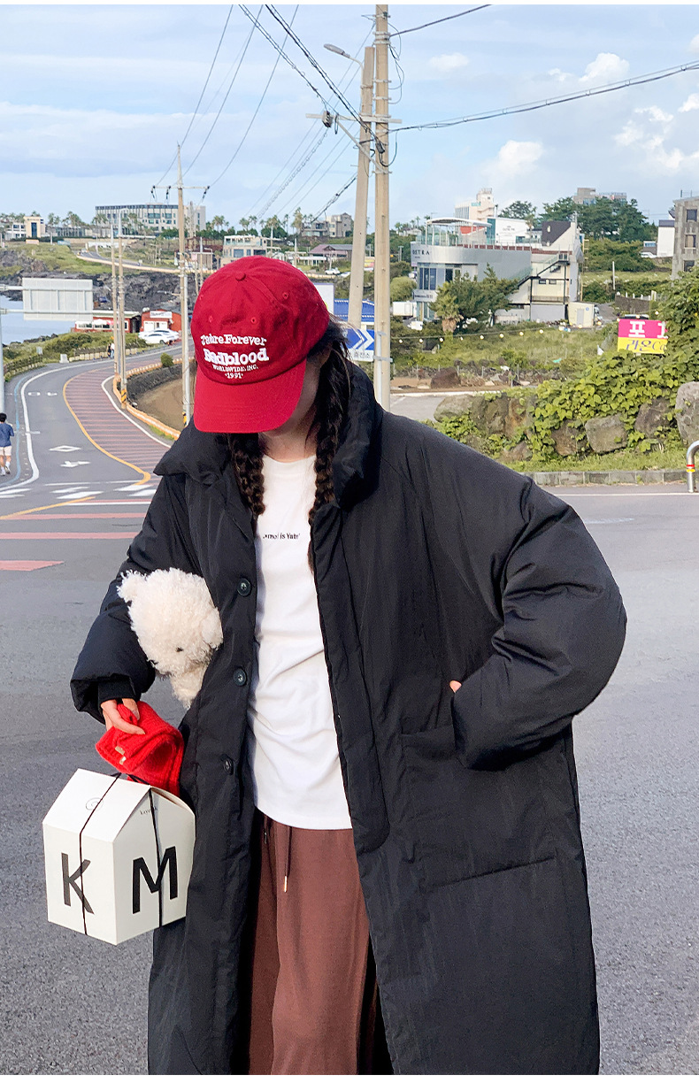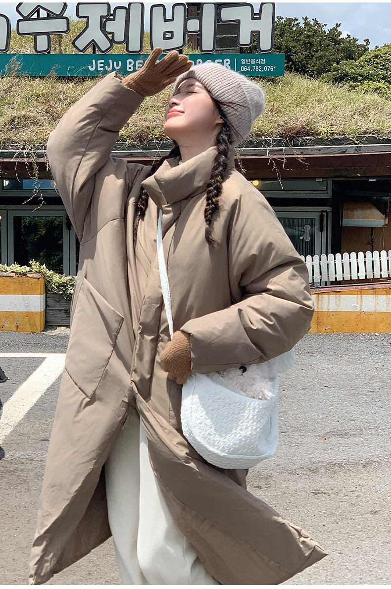 2025年新作冬用ダウンコットンコート、膝丈ミドル丈、厚手ゆったりコットンコート、韓国風ファッショントレンドジャケット