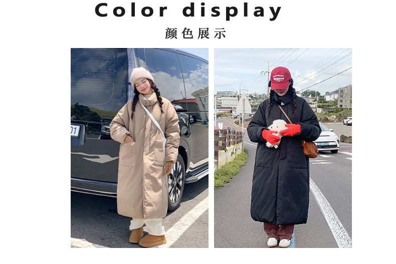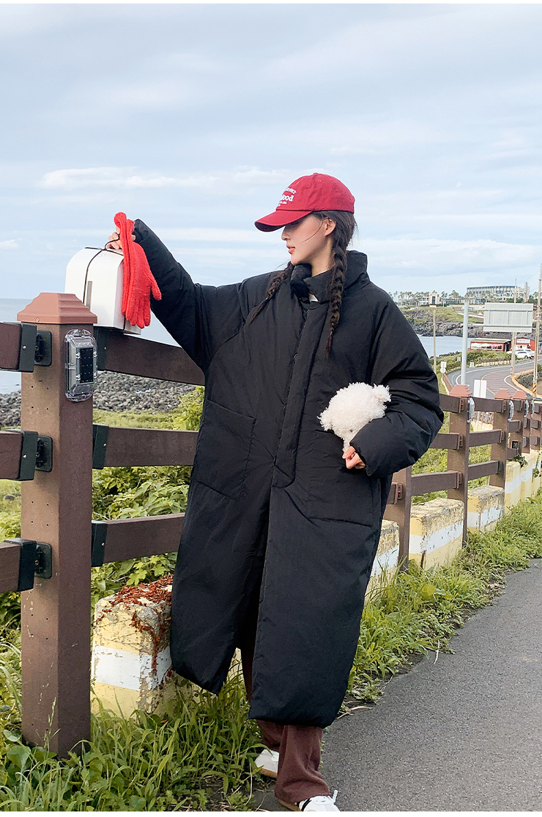 2025年冬季新款连帽过膝长款时尚保暖加厚棉服女休闲宽松棉衣外套