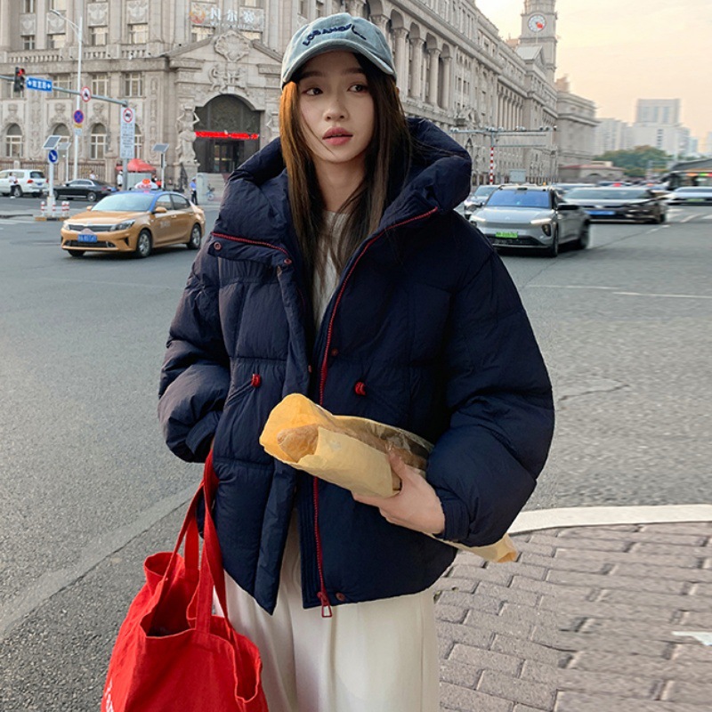 2025 新しい冬の女性の韓国スタイルのショートフード付きダウンコットンジャケットカジュアルルーズ厚いコットンジャケット
