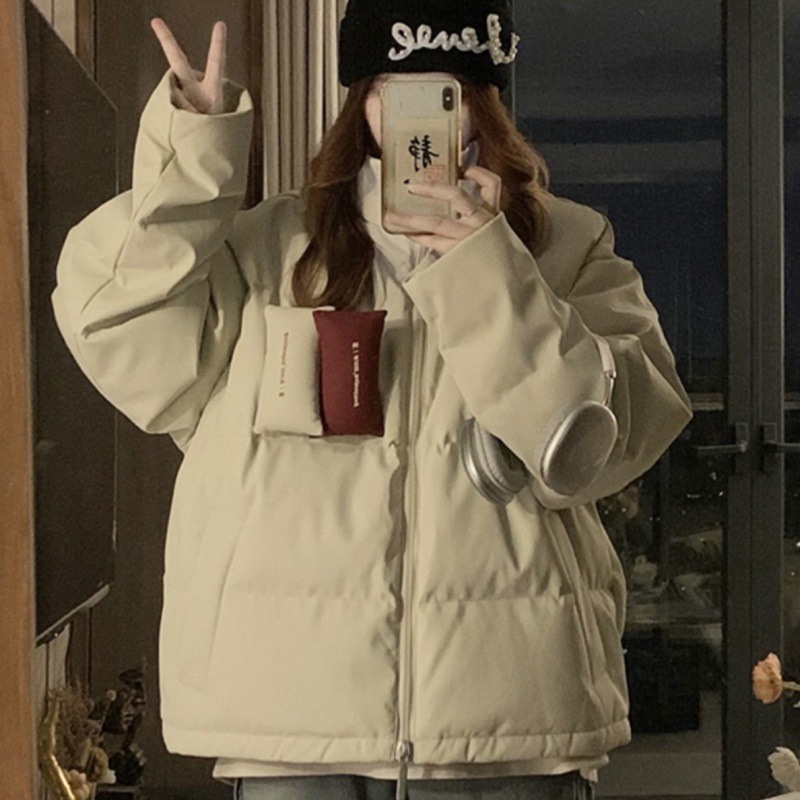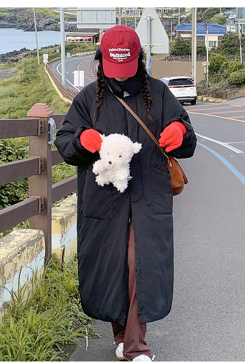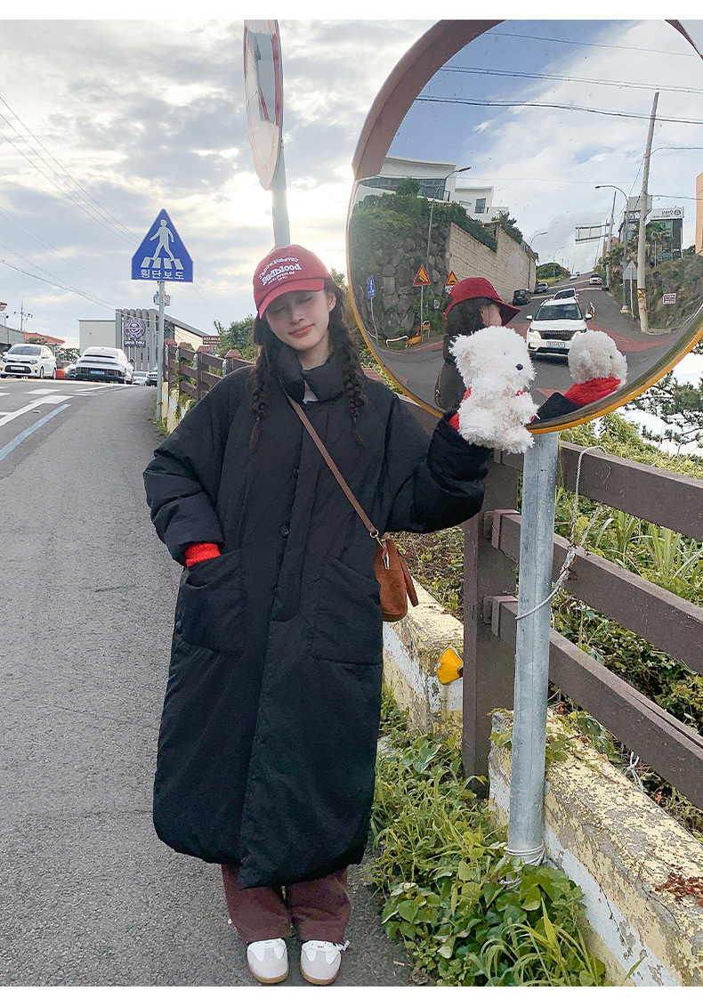 2024年の新型綿服女性冬の中長タイプの韓国版ゆるいシンプルな綿入れコートはファッショントレンドの綿入れを厚くした