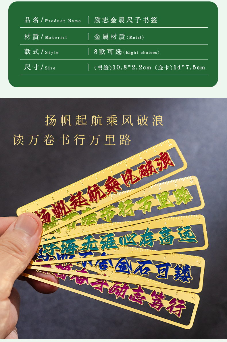 中国風の励ましの志の金属の透かし彫りのしおりの高い顔の価値の創意の小さい大衆の本は定規の学生の賞品を挟んで贈り物を奨励します。