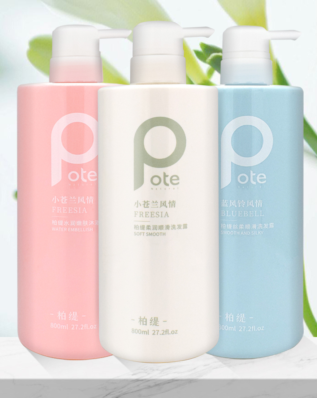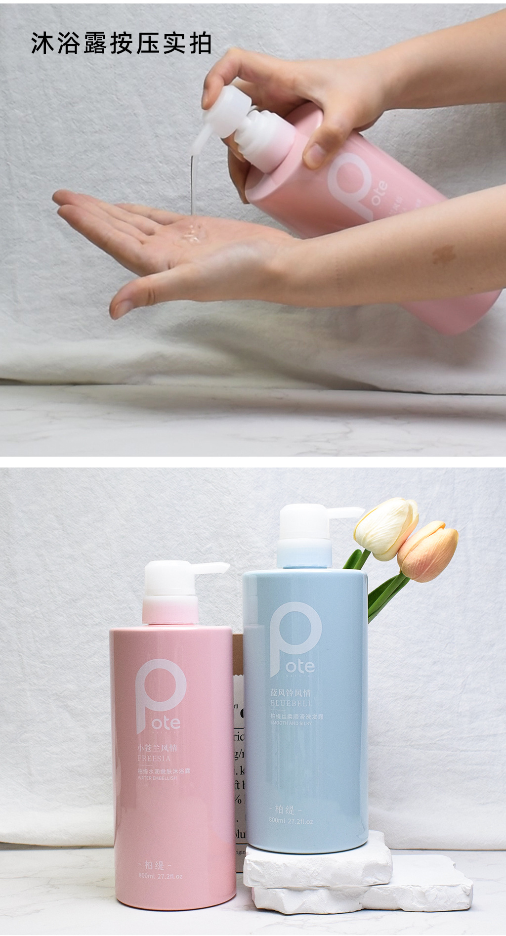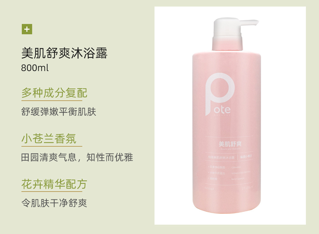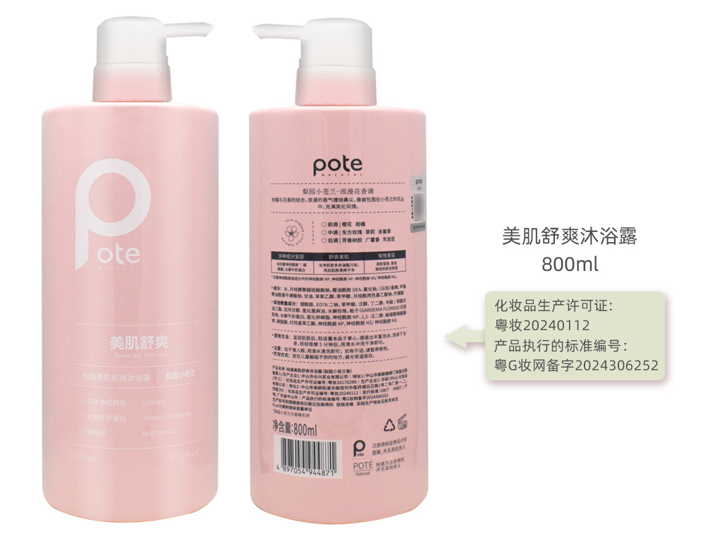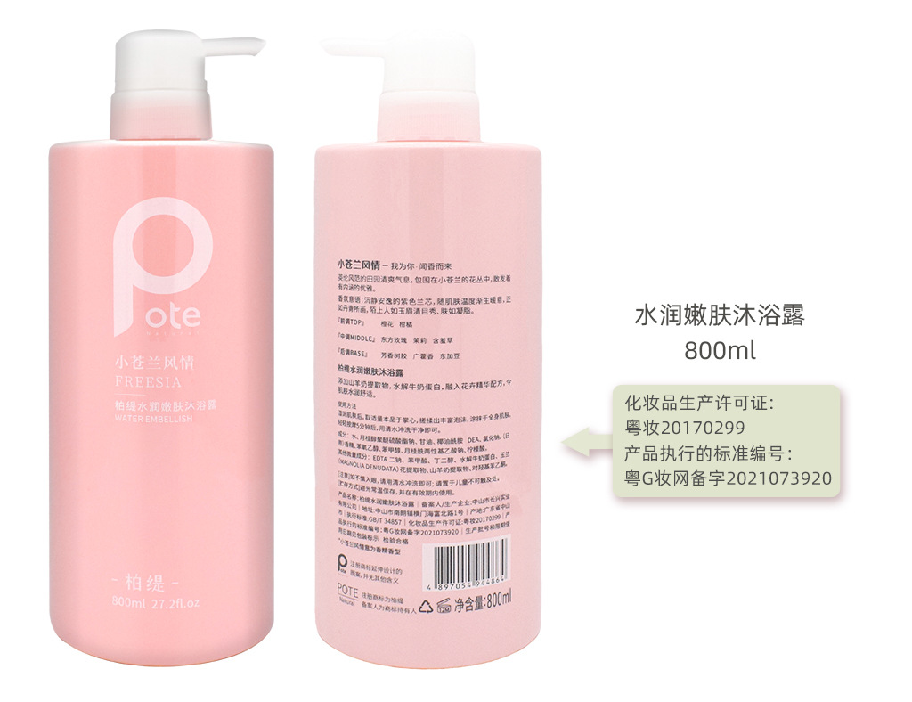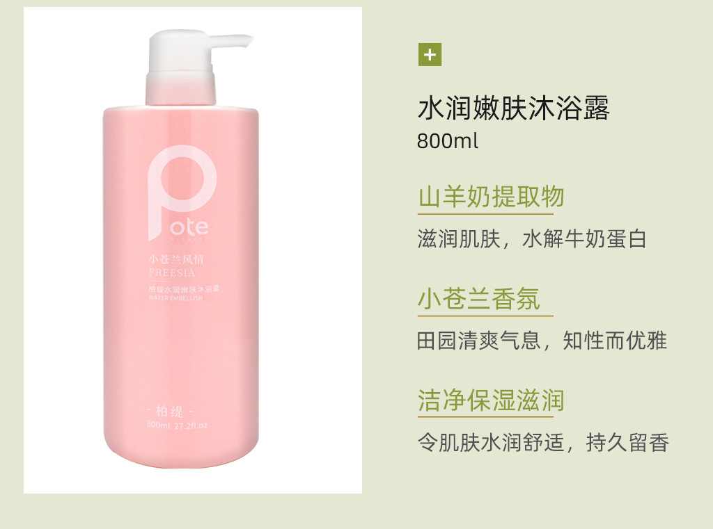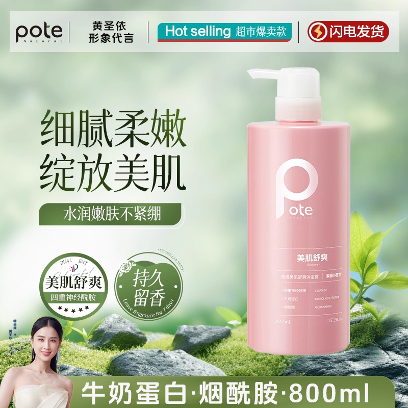 黄圣依推荐pote柏缇沐浴露持久留香72小时香水沐浴洗发水套装800m