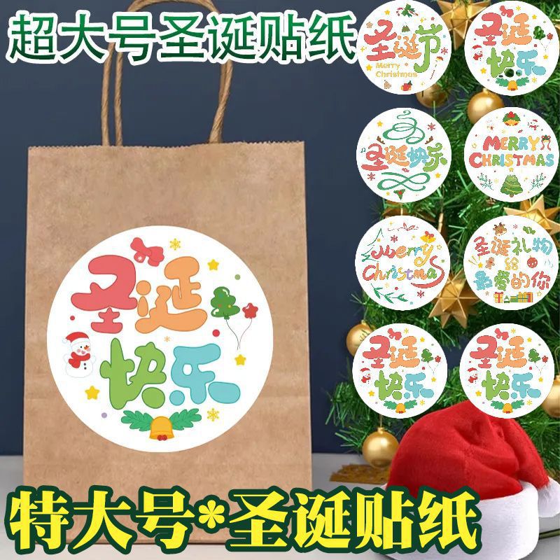 超大号圆形封口贴圣诞节卷装贴纸信封雪花圣诞老人卡通装饰标签贴