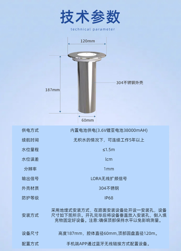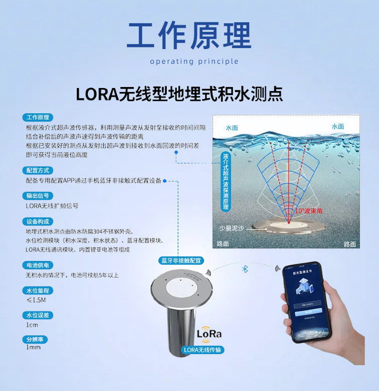 地中埋設水溜まり監視ステーション水位計レベル計設備超音波都市内湿知能センサー