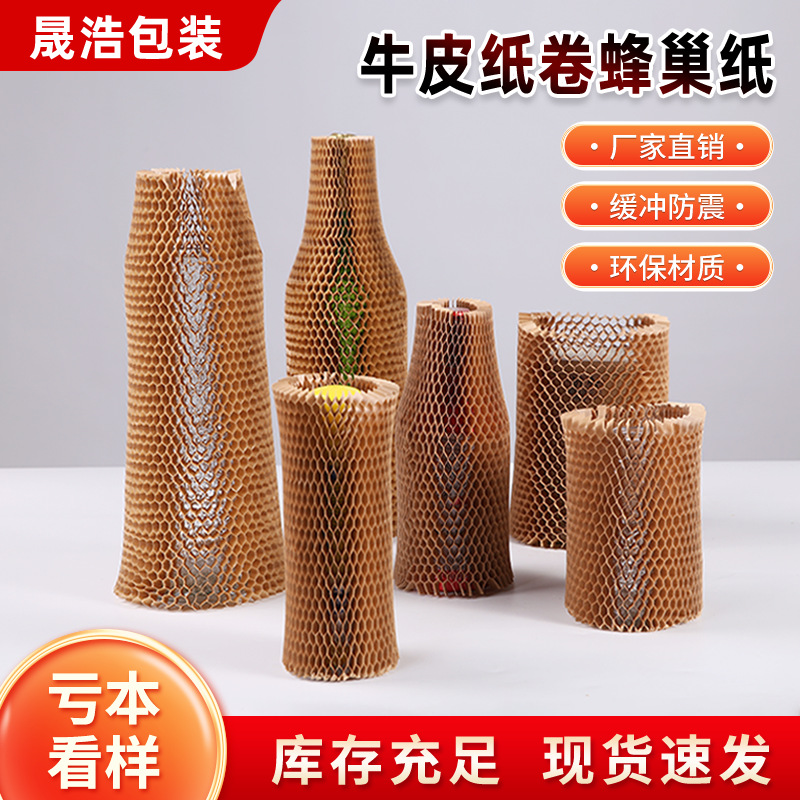蜂窝牛皮纸套防震缓冲网格纸环保可降解红酒蜂巢纸保护套蜂窝套