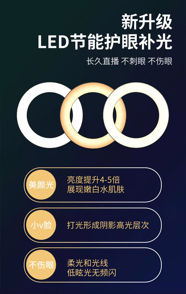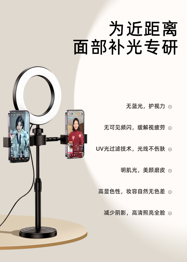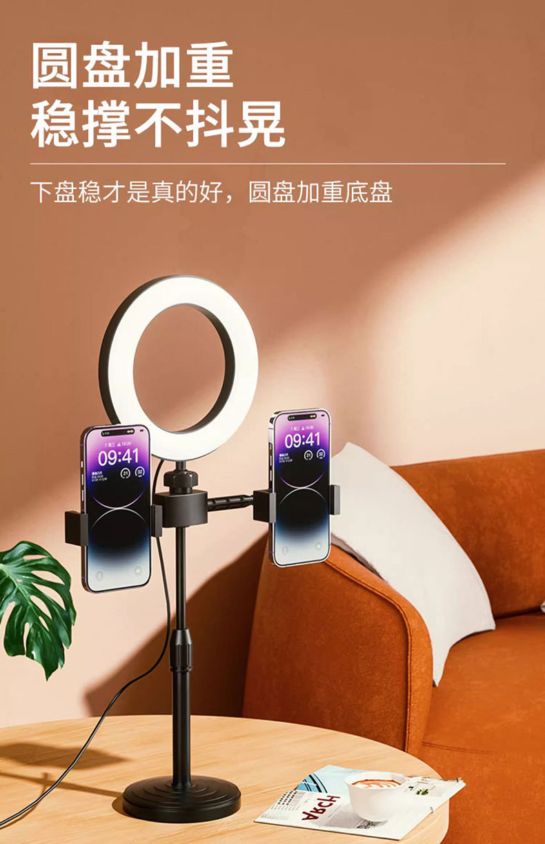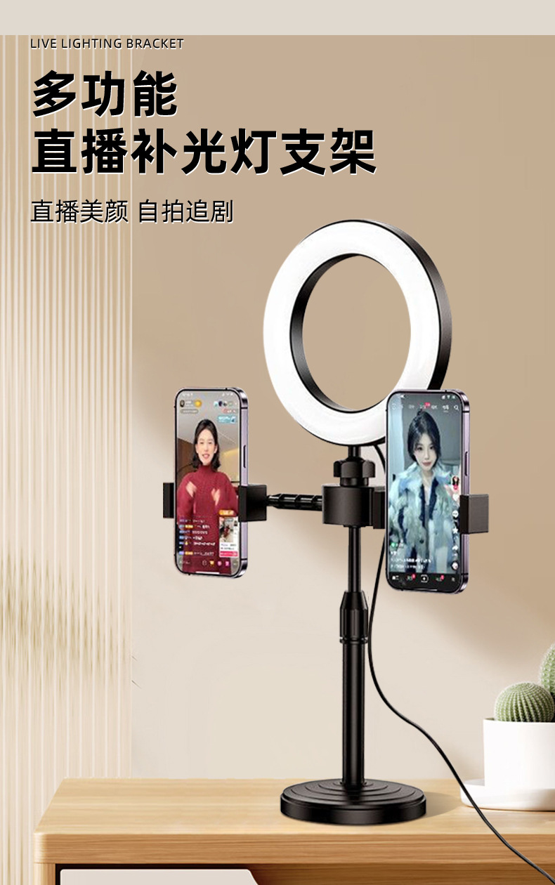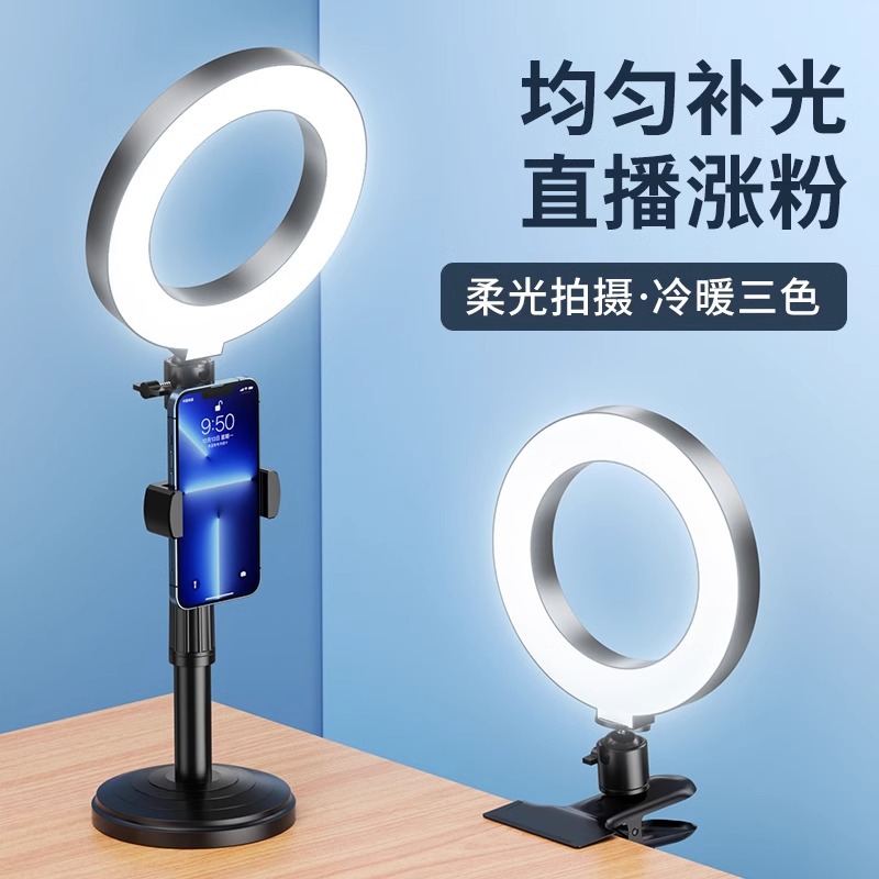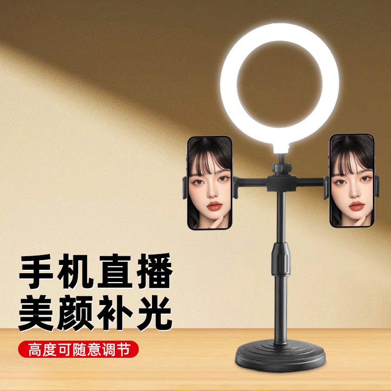 メーカー卸売りデスクトップスタンド6インチ補光灯携帯電話直播スタンド2機セット円盤伸縮スタンド