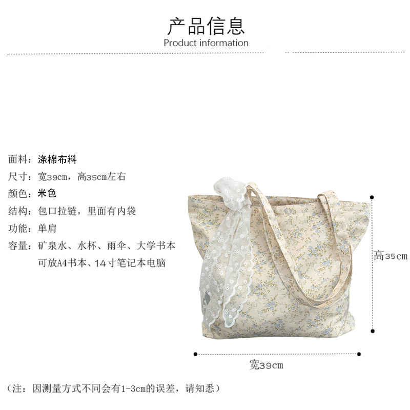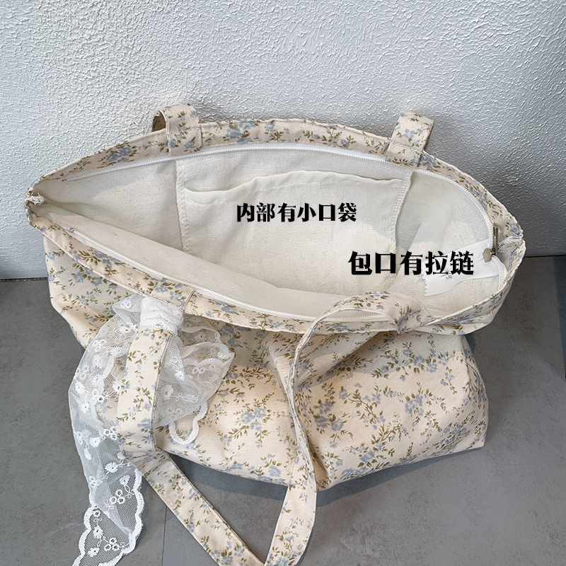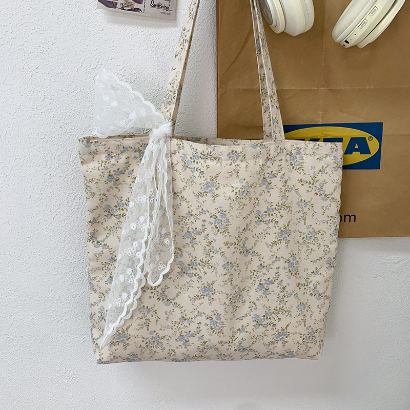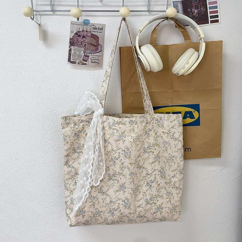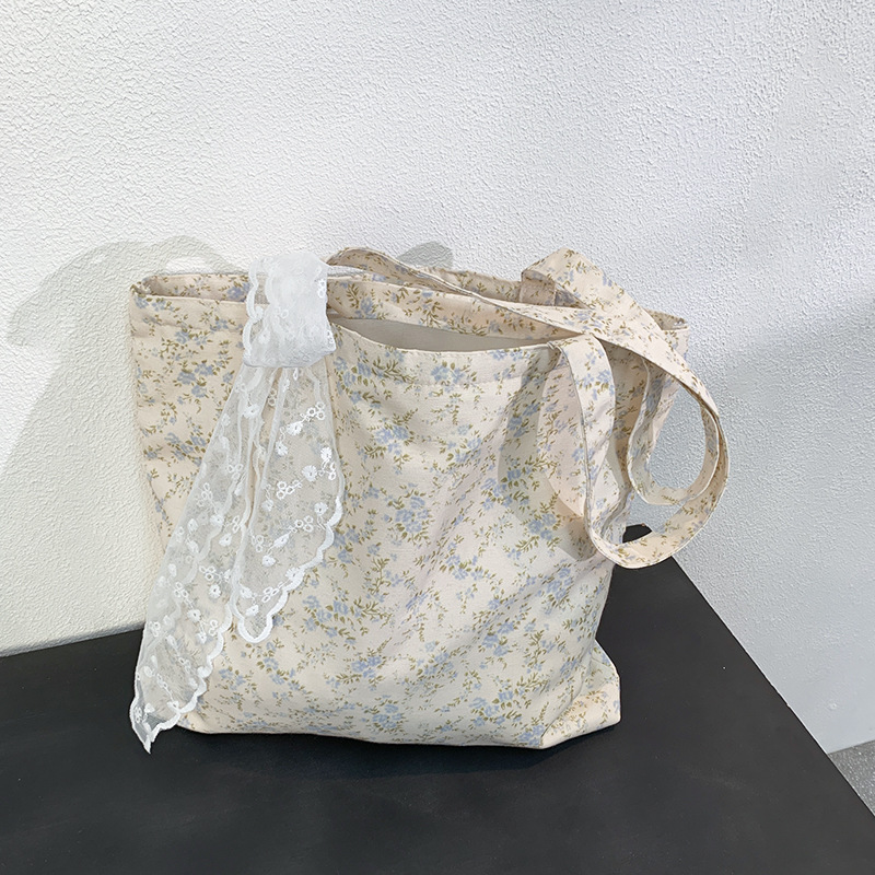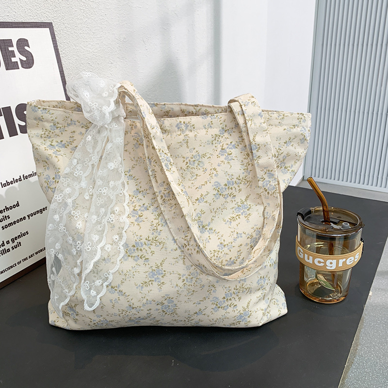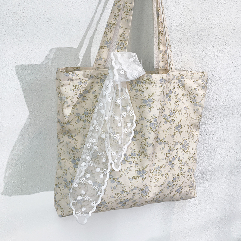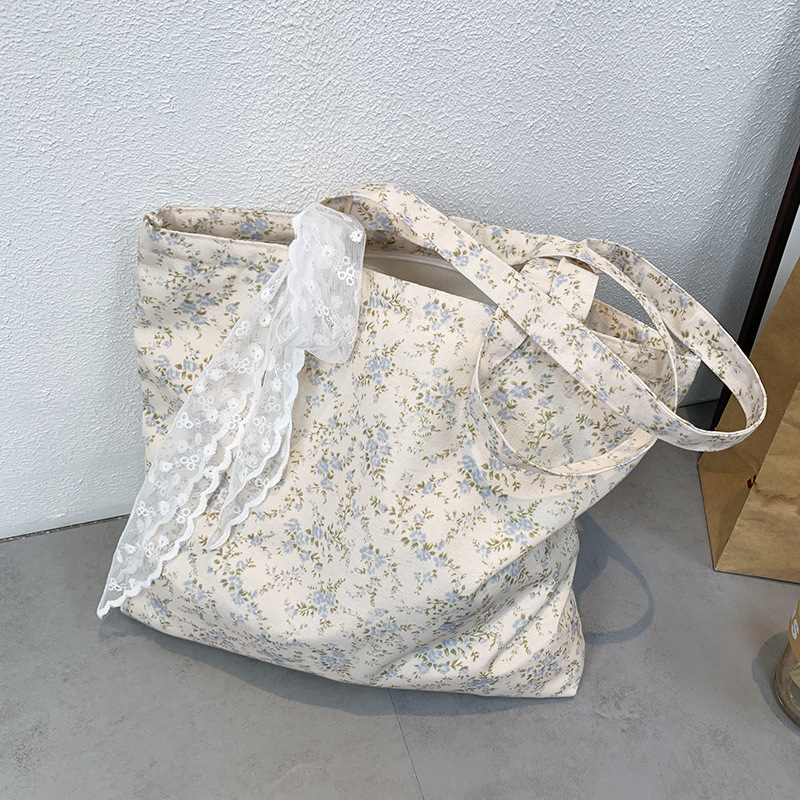 韓国ins砕花包薄手綿布袋一枚花海大容量シングルバッグ文芸復古灯芯ベルベットバッグ