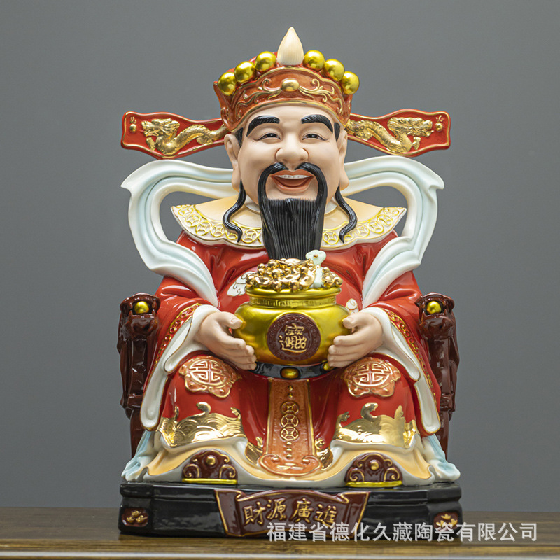 徳化陶磁器招財進宝財神爺仏像家庭用住宅供養置物文財神像店舗開業