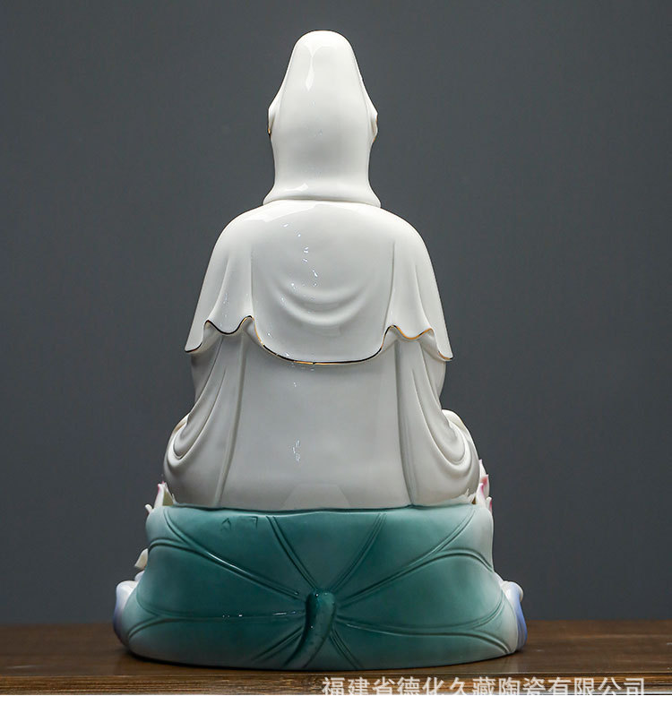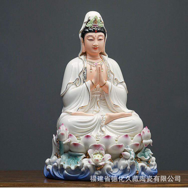 戴玉堂陶磁器宝蓮観音菩薩は仏像のリビングルームに座り、家庭用観世音菩薩を供えています。