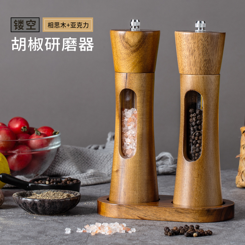 アクリル胡椒ミル家庭用海塩サンショウ研磨器宝塔胡椒ミル木製キッチン用胡椒ミル