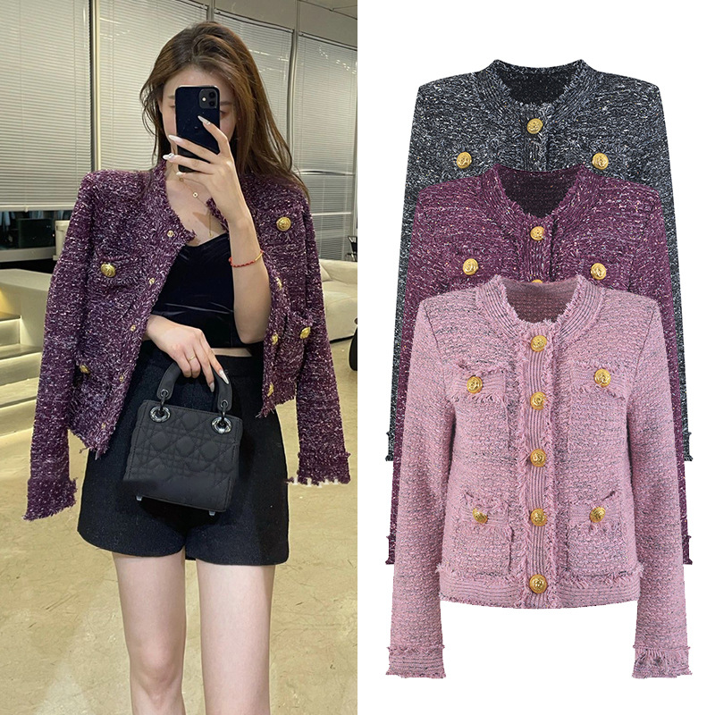 【独設オーディションw 28813】2025新新小香風微ブドウ紫重工復古文芸コート