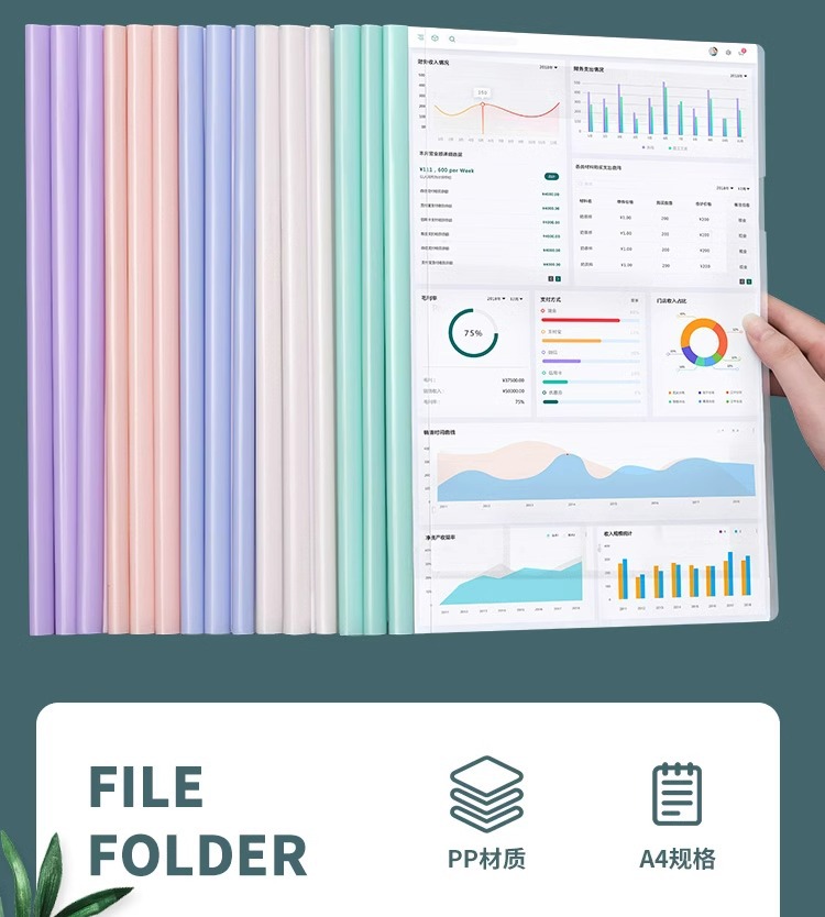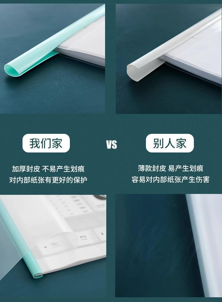 A4引き出し式ファイルフォルダ、透明で厚みのある履歴書・学生試験用紙・資料収納フォルダ