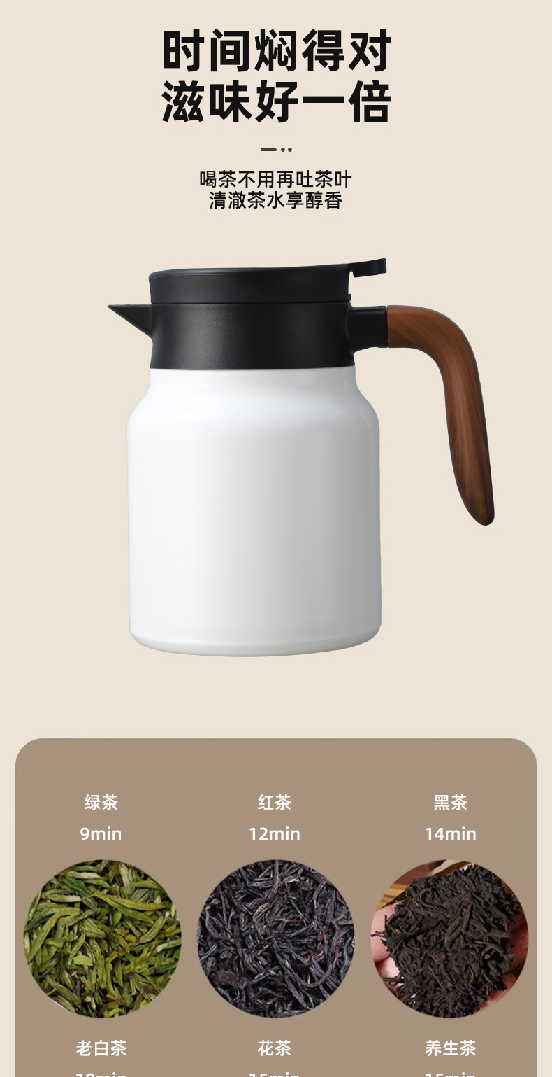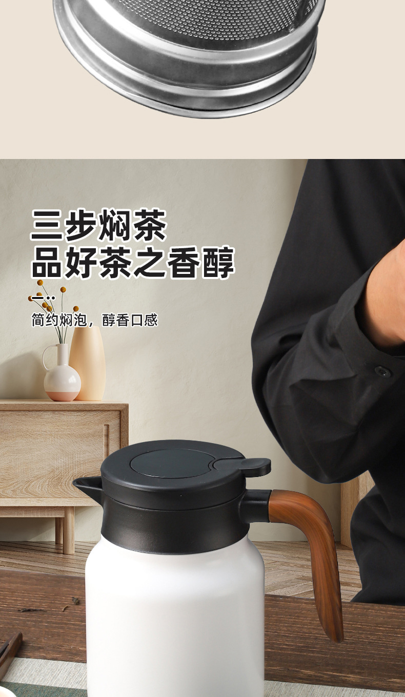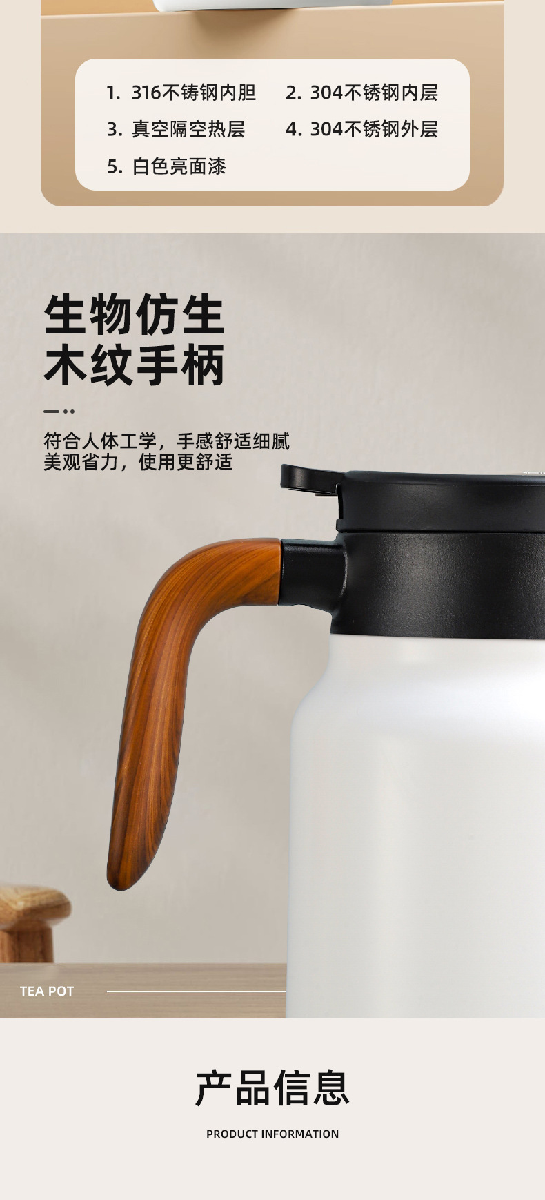 お正月ギフト木目调ティーポット316ステンレス大容量保温ポットポット茶水分离ティーポット