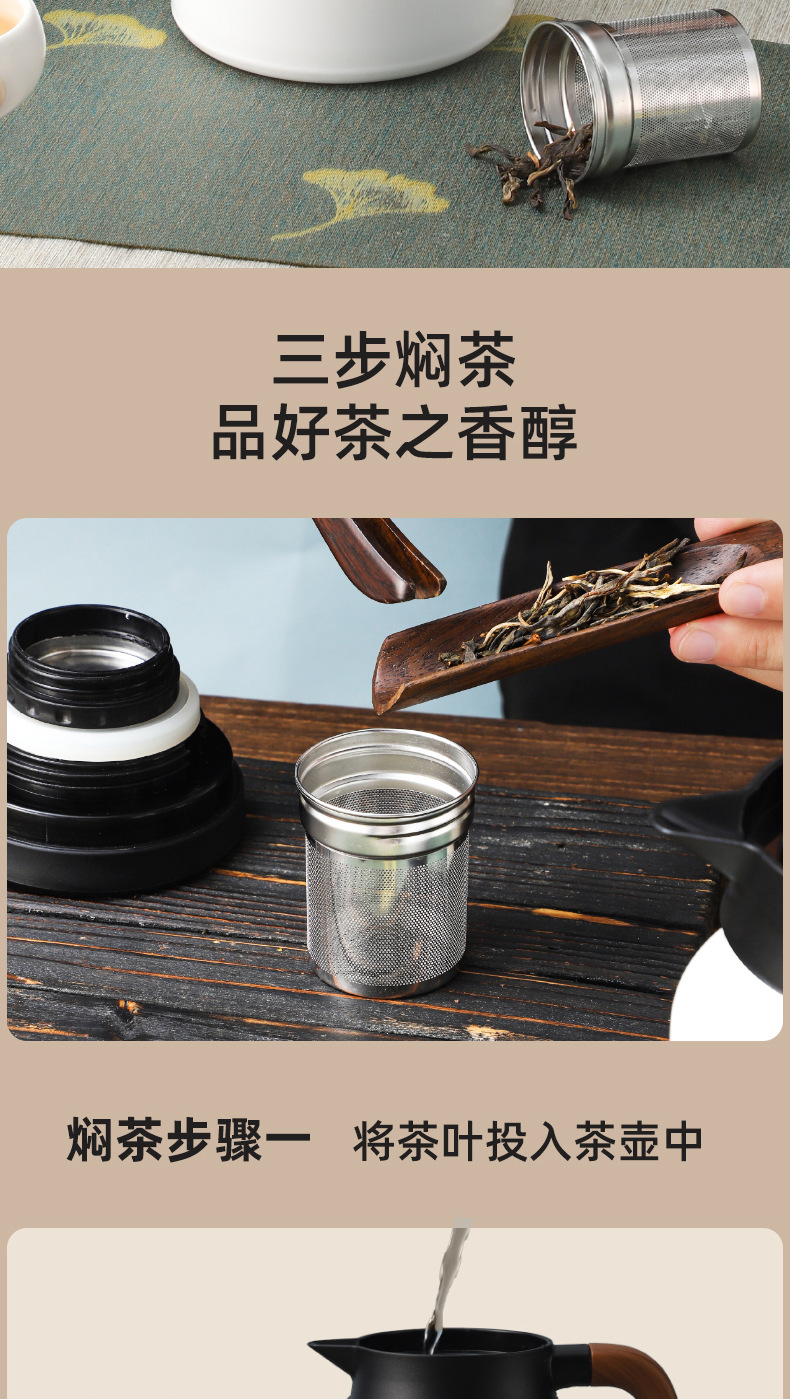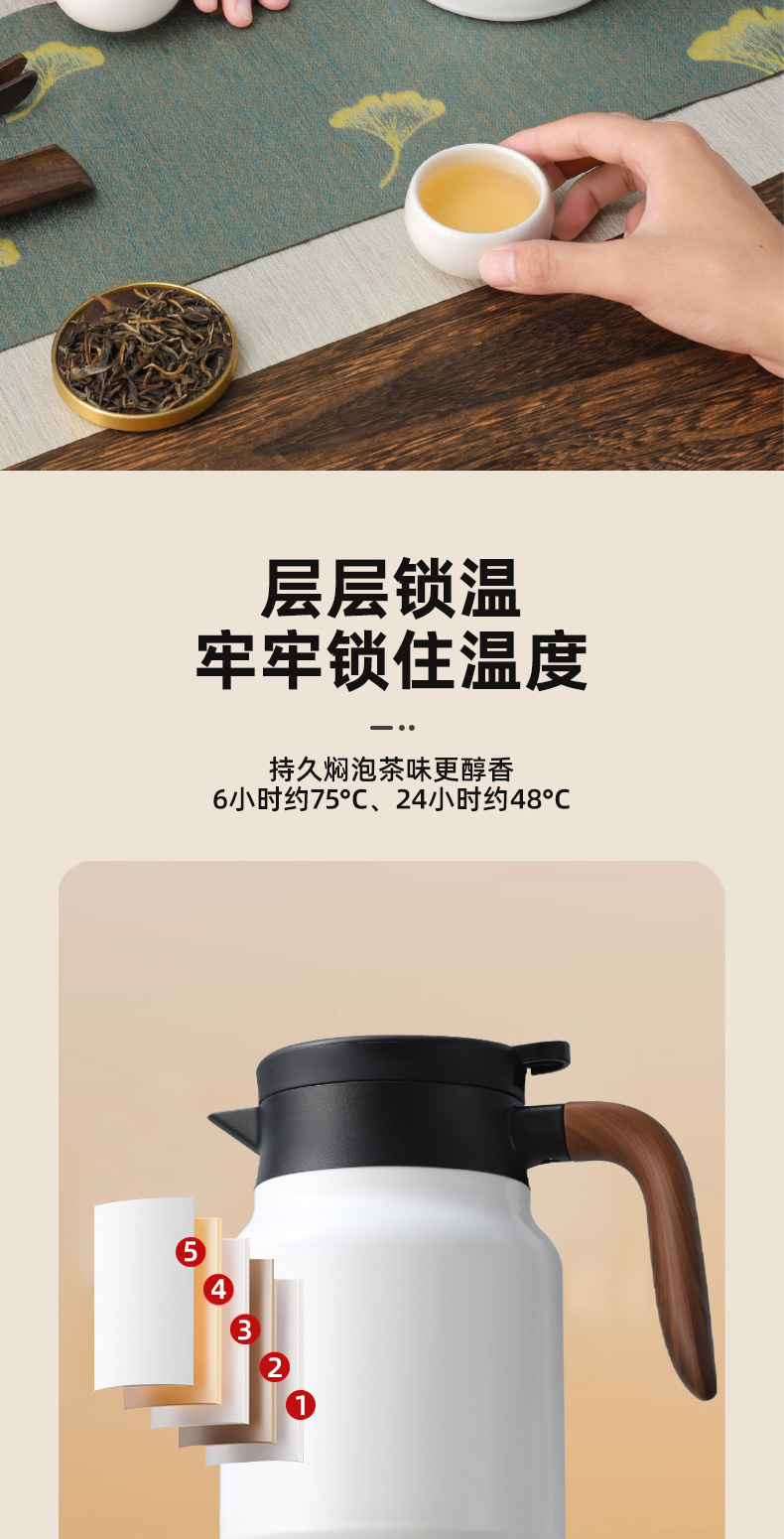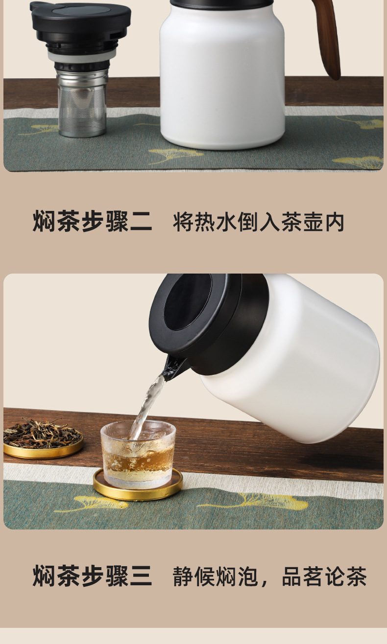 お正月ギフト木目调ティーポット316ステンレス大容量保温ポットポット茶水分离ティーポット