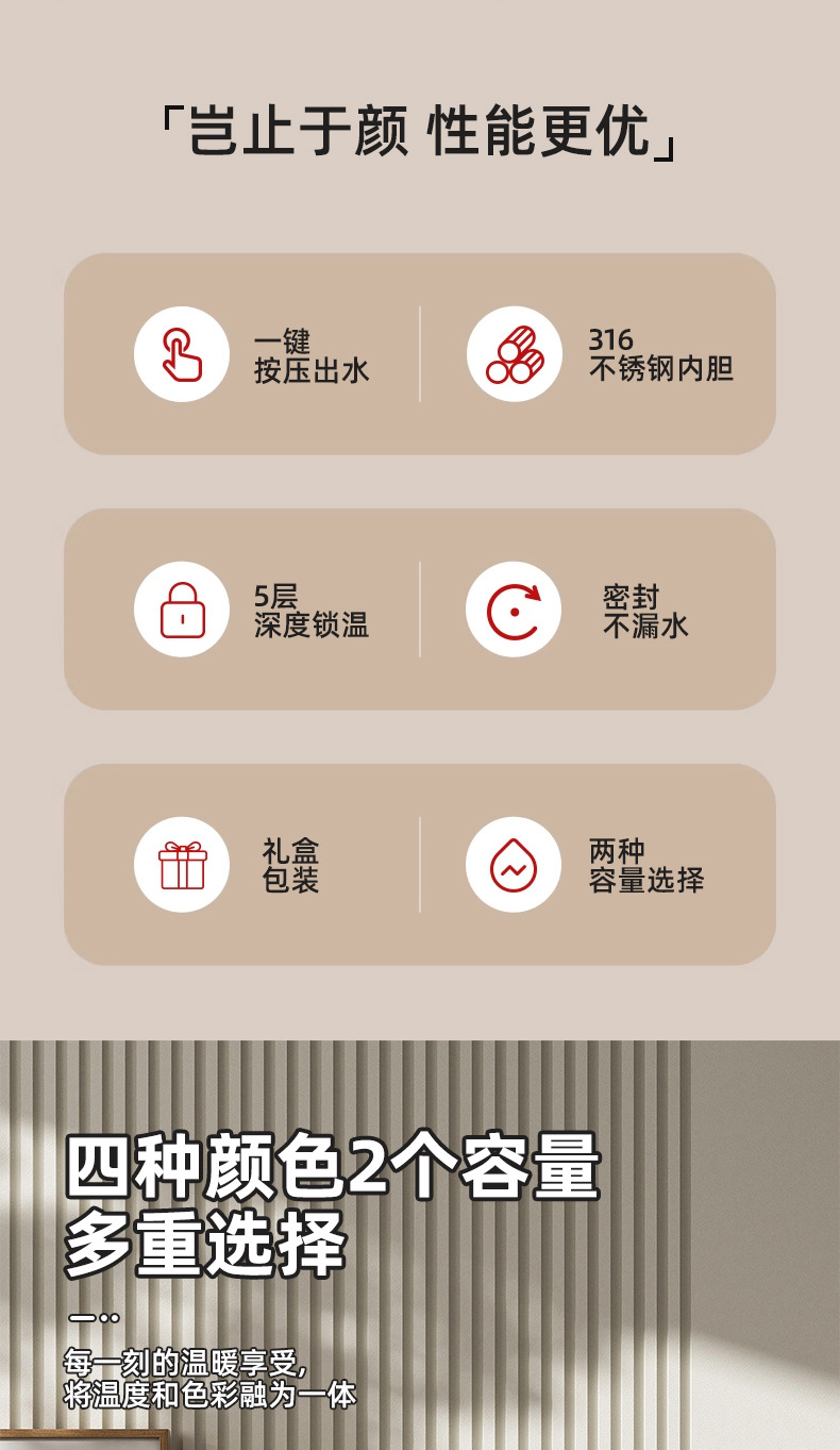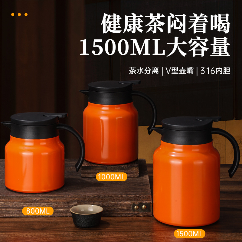 316ステンレス保温ポット蒸焼ティーポット大容量オフィス茶水分離ティーポットプレゼント保温ポット