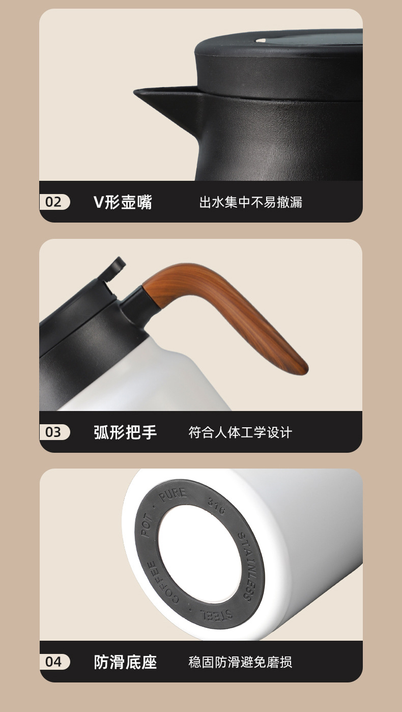 316不锈钢焖茶壶家用办公茶水分离保温壶便携手柄按压闷茶咖啡壶