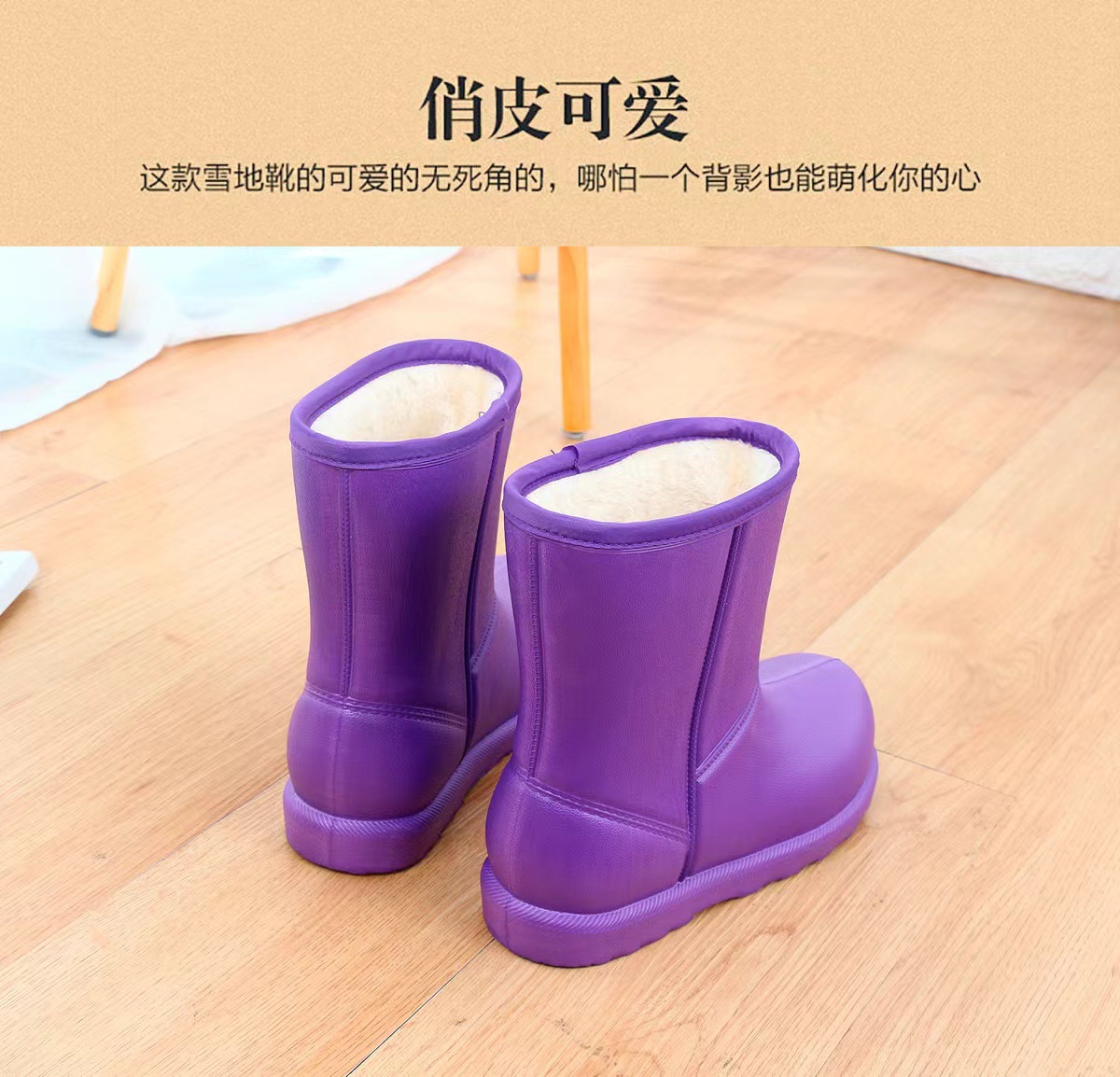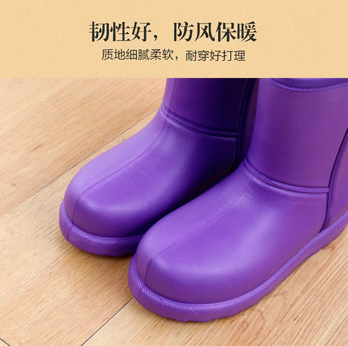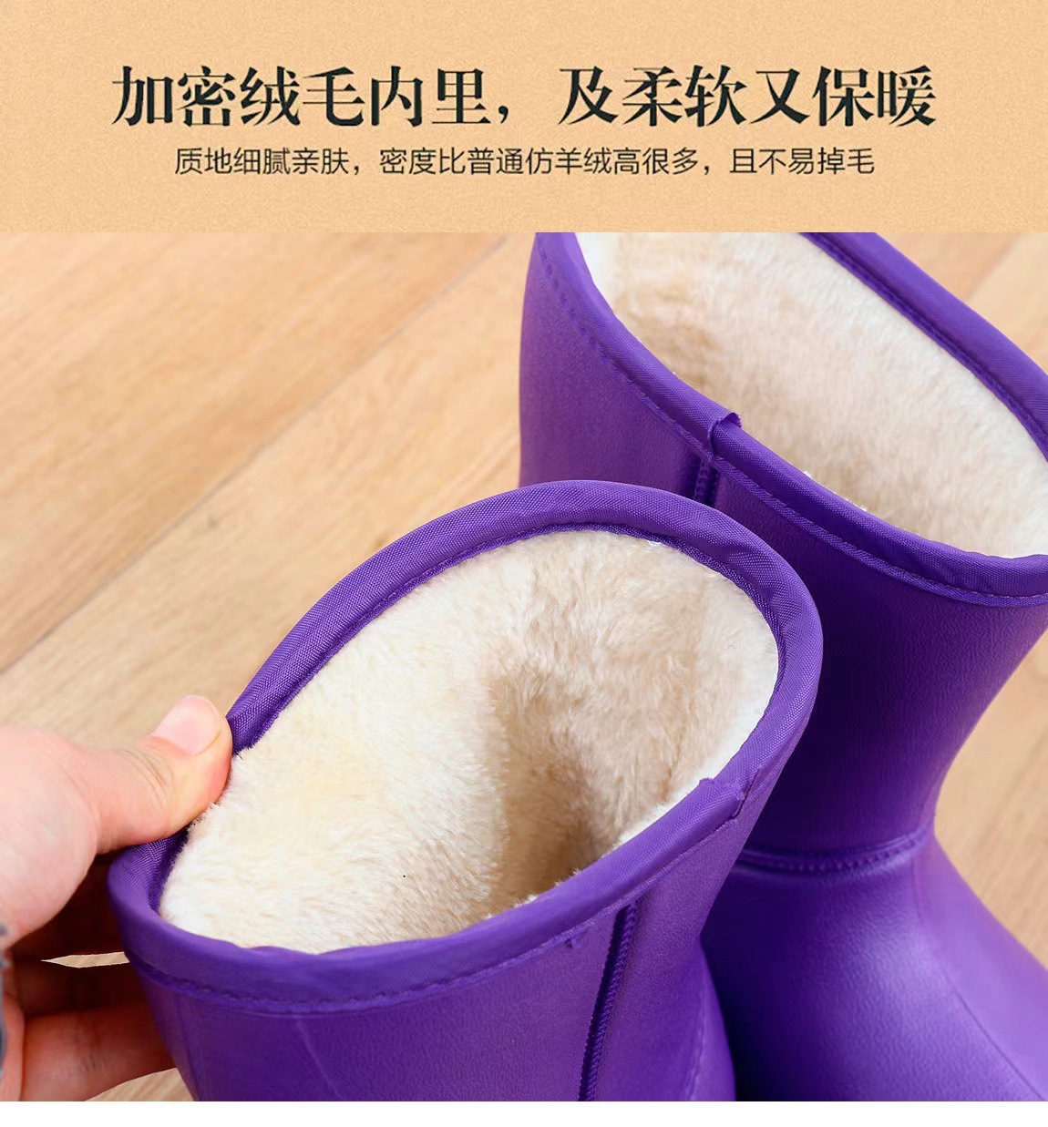 加绒雪地靴防滑保暖防水鞋雨鞋EVA一体洗车厨房水靴中筒棉胶鞋女