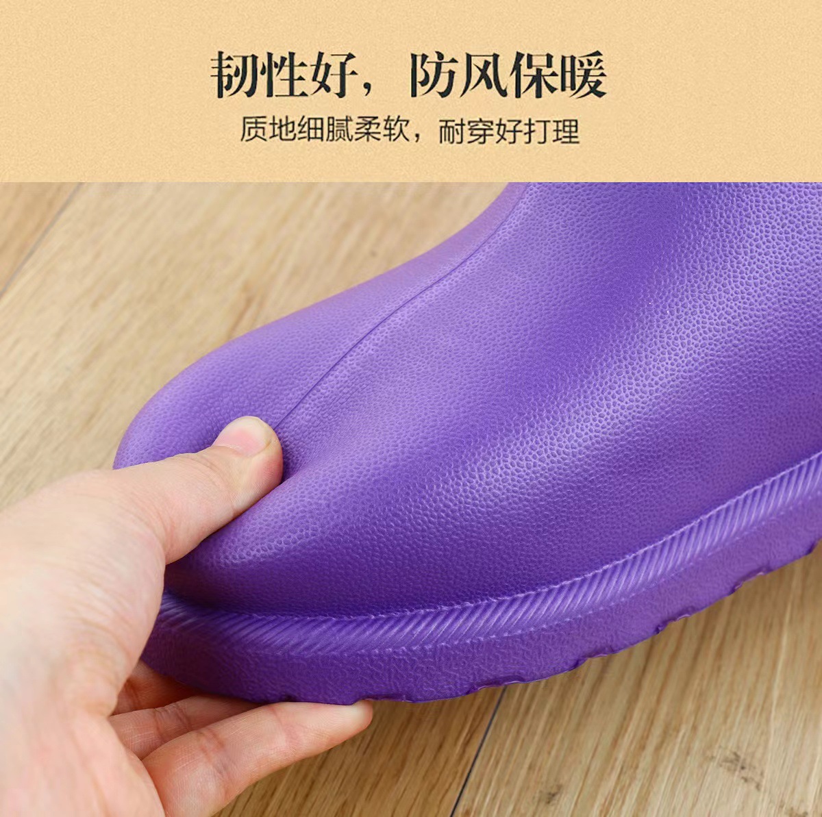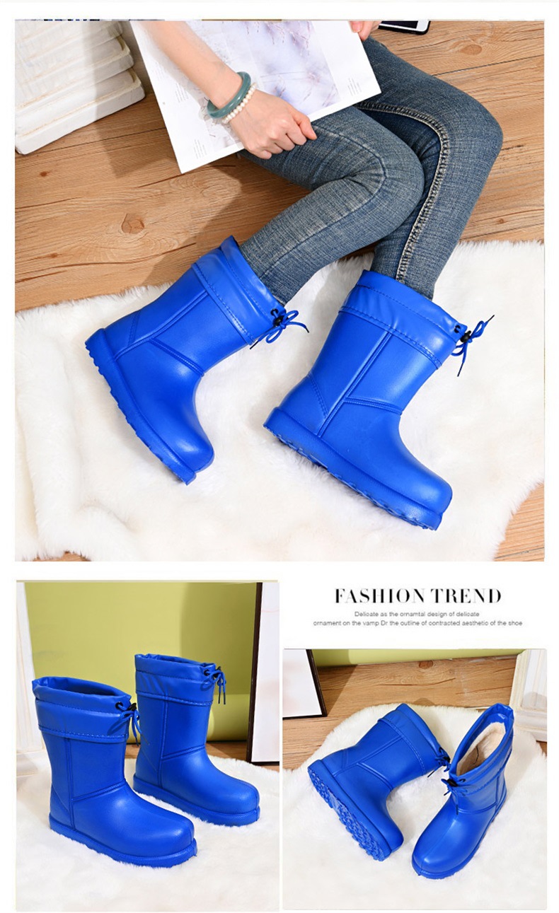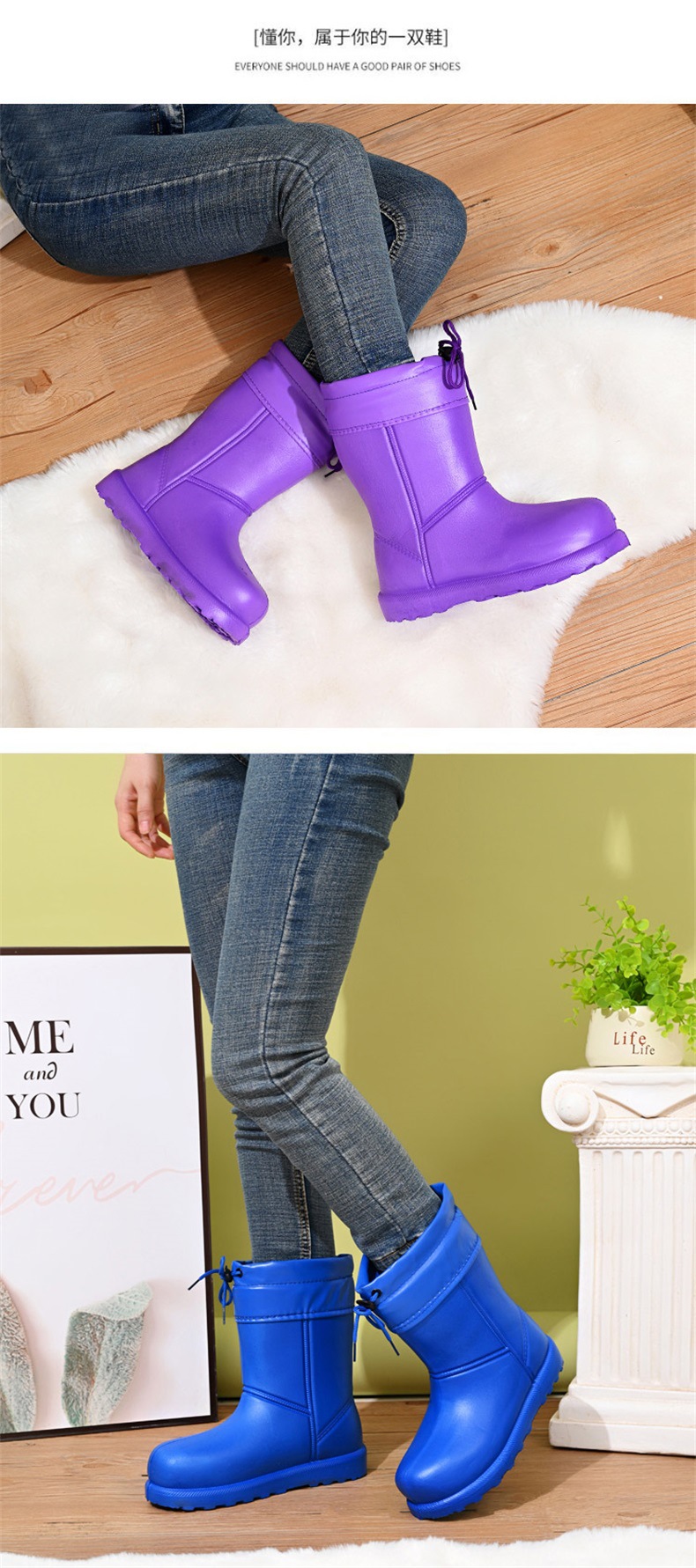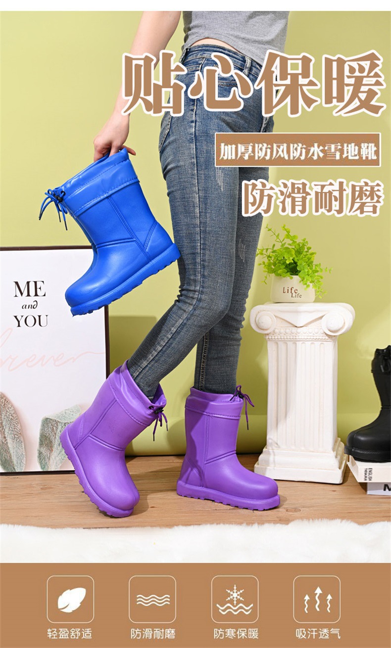 加绒雪地靴防滑保暖防水鞋雨鞋EVA一体洗车厨房水靴中筒棉胶鞋女