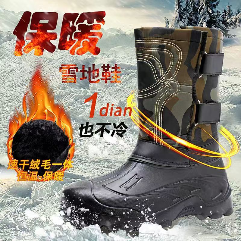 外贸冬季加厚保暖雪地靴加绒防滑轻便男士钓鱼靴防水冰钓棉鞋雨靴
