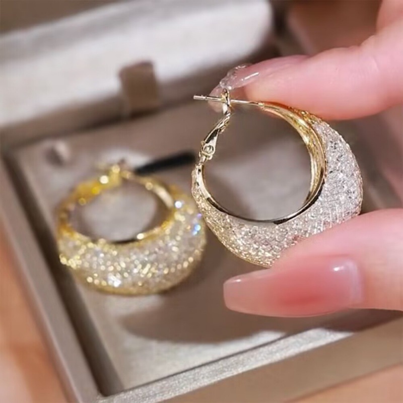S925 シルバー針ジルコンフープイヤリング 2024 新しいハイエンド大型イヤリングコールドスタイル誇張イヤリングタッセル