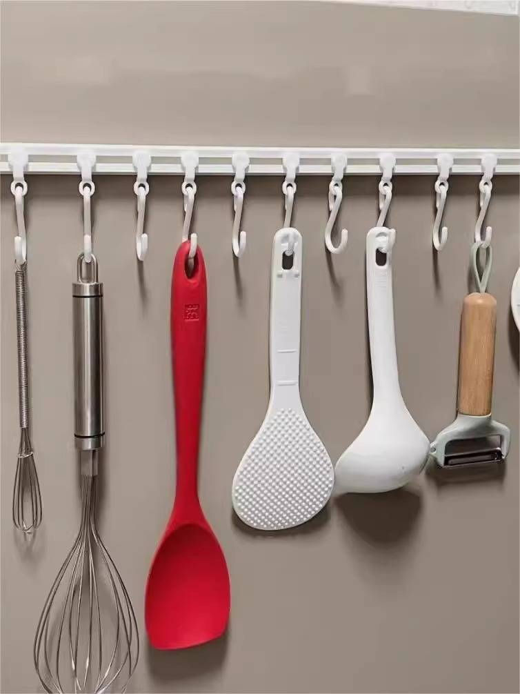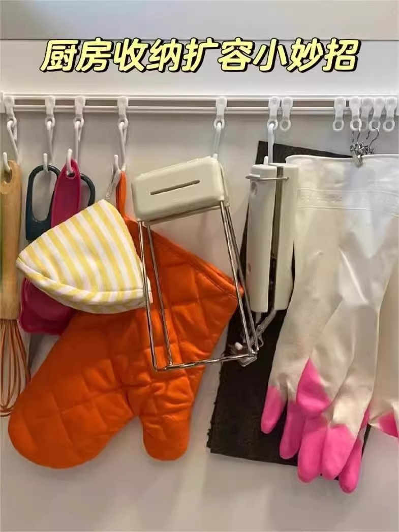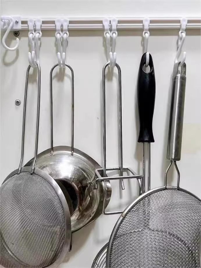 スライドレールフック厨房収納ドア後にフックを固定します。穴を開けないでください。一列にラックを掛けます。