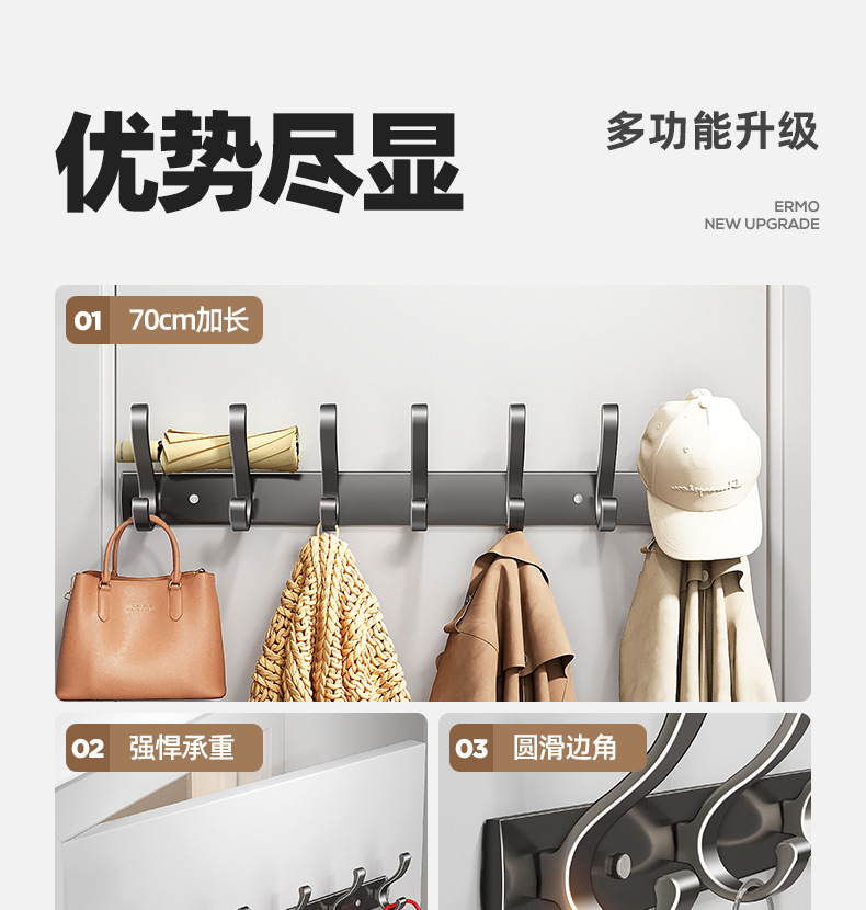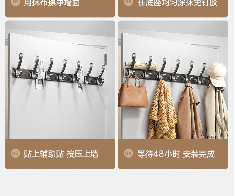 挂衣钩壁挂墙上门后挂衣钩免打孔进门玄关粘贴排钩强力承重衣帽钩