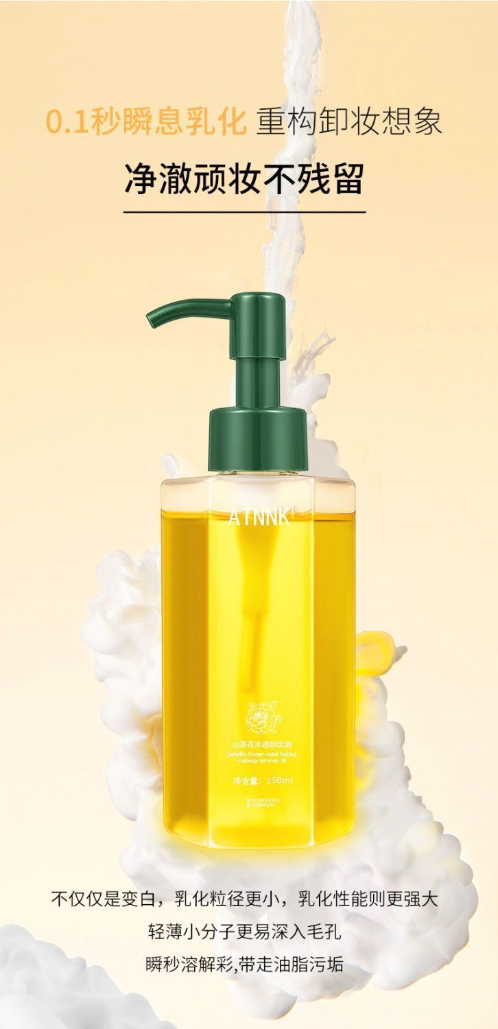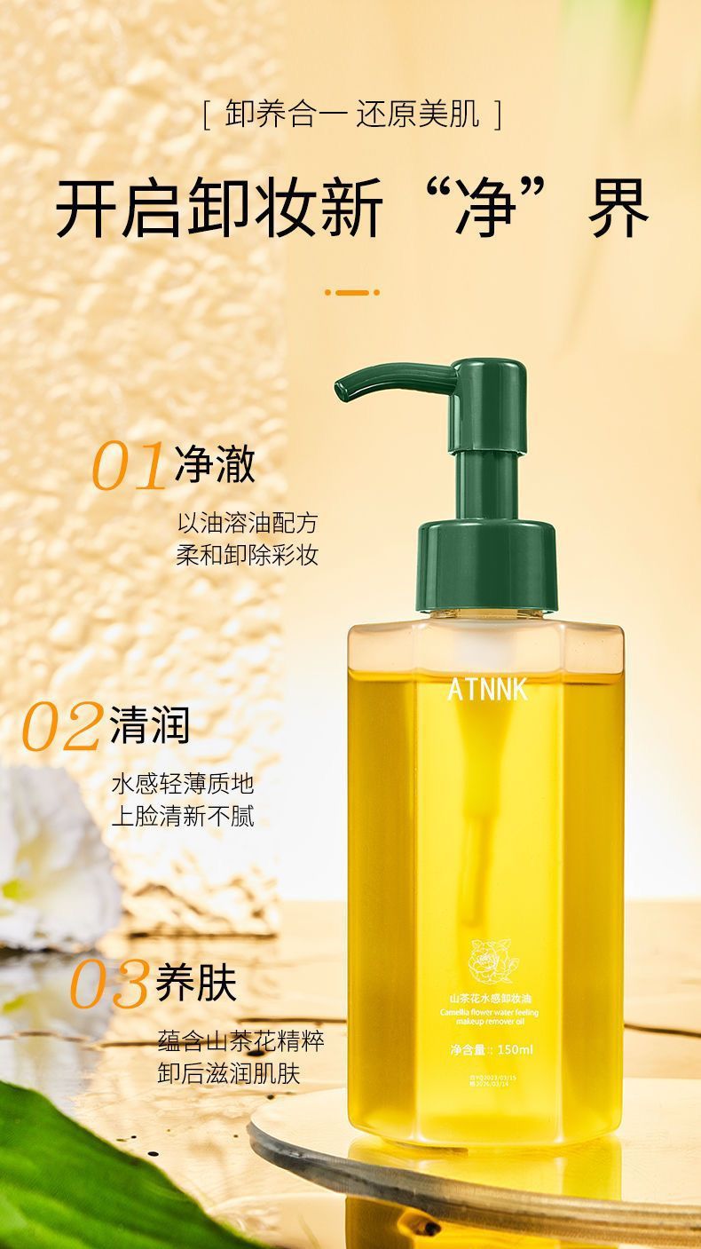 ATNNK カメリア クレンジング オイル 優しく刺激する敏感なディープ クレンジング 目、唇、顔のスリーインワン クレンジング オイル