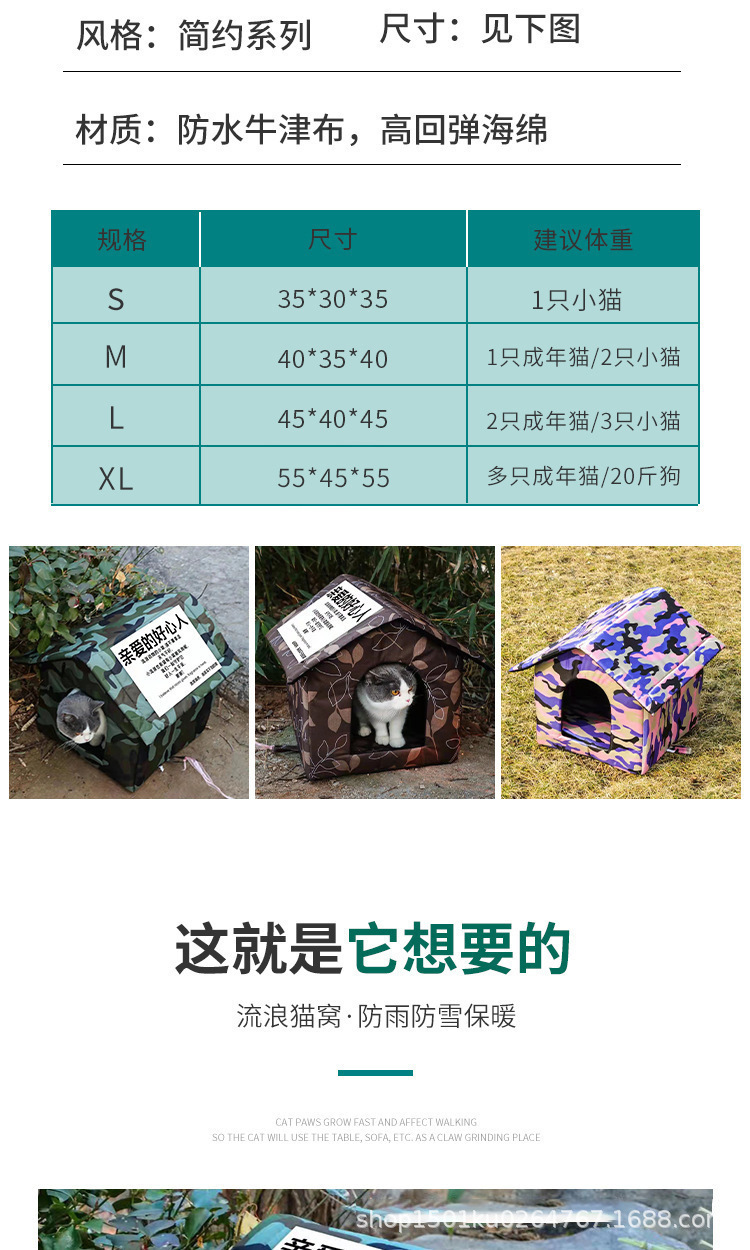 サイズ S (35*30*35cm、0 歳未満のペットに適しています),サイズ M (40*35*40cm、猫 4kg / 犬 3kg に適しています),Lサイズ (45*40*45cm、猫12/犬に適しています 5kg ),XLサイズ(55×45×55cm、複数の成猫/犬 10kg ),給餌場 レギュラーモデル 55×40×40,給餌場アップグレードされた上部水溜まり防止モデル 55*40*57