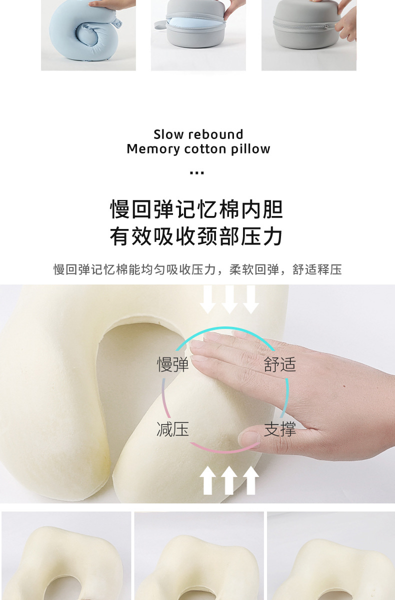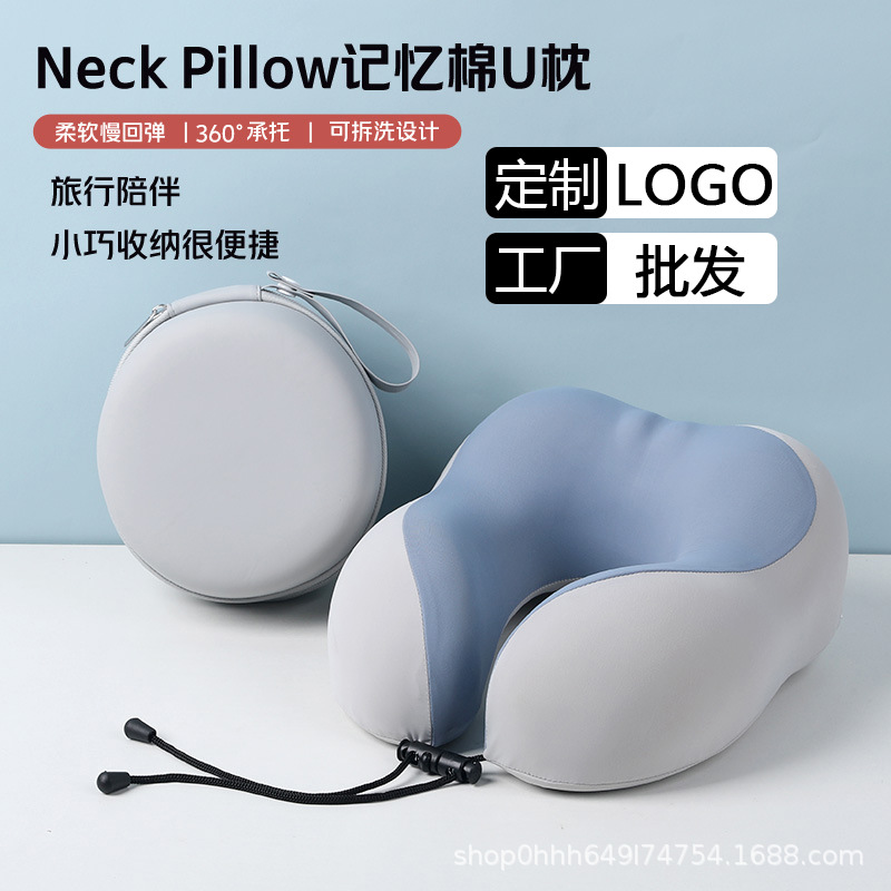 低反発U字型枕 収納便利 肌に優しいナイロン製 首枕 頸椎枕 メーカー卸売 ギフト ロゴ印刷可能